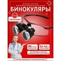 Профессиональные стоматологические бинокуляры очки-лупы системы Flip-up с увеличением 3.5x, обеспечивают четкую фокусную глубину обзора 90 мм в диапазоне рабочей дистанции 320 - 420 мм, а также имеют возможность регулирования межзрачкового расстояния. Фокусное расстояние рассчитано на людей со 100% зрением, в случае дальнозоркости оно увеличивается, а в случае близорукости уменьшается. Очень легкий вес 85 гр сделает процесс работы стоматолога, ювелира, косметолога более точным и комфортным, поможет снизить нагрузку на зрение, поддерживать правильную осанку во время работы, обеспечивая возможность видеть увеличенное изображение необходимых объектов. Данная модель протестирована в работе российскими стоматологами и получила наилучшие оценки. Шарнирный механизм позволяет поднять лупы вверх и продолжить работу, не снимая защитных очков в моменты, когда увеличение не требуется. Регулируемый шнурок обеспечит дополнительную фиксацию на голове. В комплект входят очки с бинокулярами, стильный переносный кейс в подарок, инструкция, дополнительное крепление для использования линз на своих очках, шнурок, салфетка для ухода за линзами. Для достижения наилучшего качества изображения рекомендуется произвести следующую настройку: 1. Настроить межзрачковое расстояние, для чего следует надеть лупу и с помощью регулировочного винта, расположенного в верхней части крепления лупы к оправе, совместить изображения в левом и правом окуляре до их полного слияния, на одном предмете. 2. Принять комфортное для себя положение. 3. Перемещайте объект вперед и назад, чтобы найти подходящее для фокусировки рабочее расстояние. Предмет должен находиться в центре поля зрения и быть четко виден во всех, самых мелких, подробностях. Не является медицинским товаром, может быть использован в целях обучения. Меры безопасности: бинокулярная лупа предназначена исключительно для оптического увеличения объектов при обследованиях и операциях. Не рекомендуется смотреть через лупу на прямой солнечный или яркий искусственный свет. Хирургические бинокулярные очки также отлично подойдут для работы с мелкими деталями и чтения мелкого шрифта, для ремонта электроники и часов, как бинокуляры для лор врача