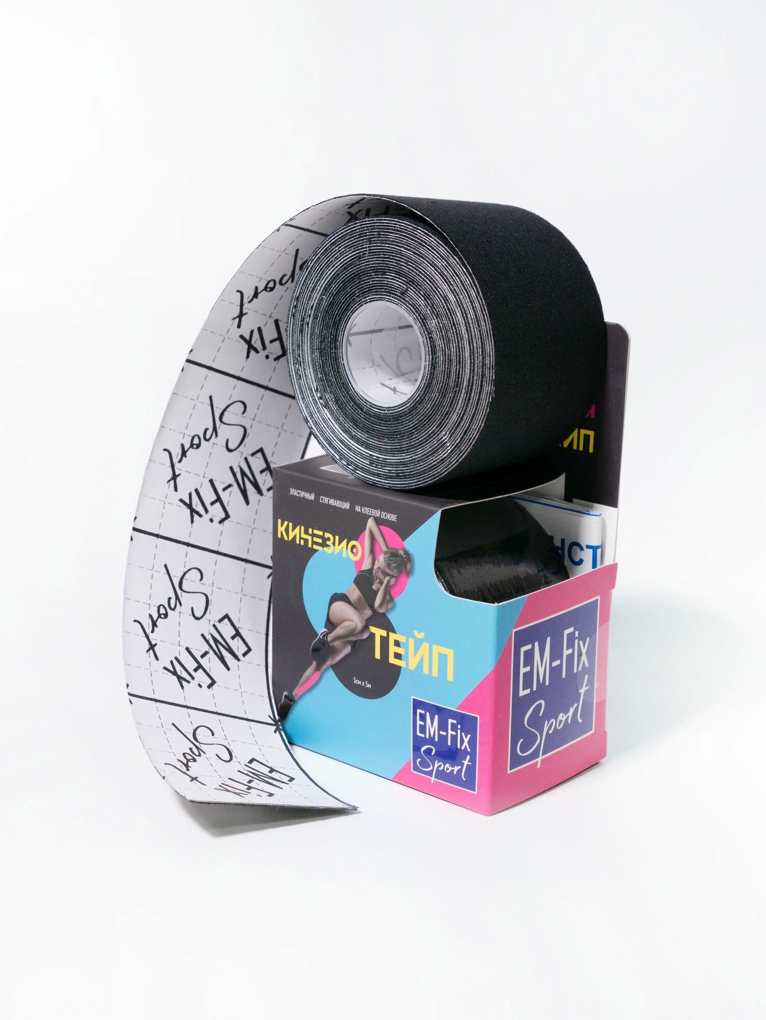 Купить Бинт EM-Fix Sport (Tape) 5см х 5м медицинский эластичный фиксирующий, черный с доставкой по всей России.