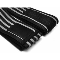 Коленные бинты незаменимая часть экипировки спортсмена любого уровня подготовки. Битны отлично подойдут как любителям, так и профессионалам. Основная функция бинтов защищать спортсмена от коленных травм суставов. Снимая часть нагрузки с мышц, они снижают риск травм и можно работать с большими весами. Благодаря своим эластичным свойствам материала, бинты не сковывают движения во время приседаний и позволяют спортсмену преодолеть мертвые точки движения. Использовать бинты можно не только на соревнованиях, но и на тренировках повышая их интенсивность. На бинтах имеется липучка, позволяющая без труда зафиксировать его на ноге.