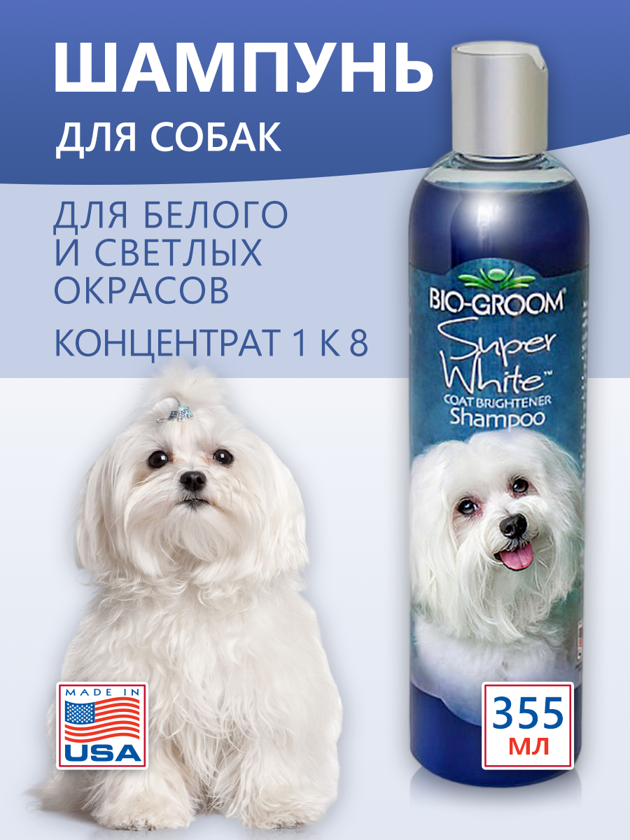 Шампунь Bio-Groom Super White для собак белого и светлых окрасов, 355 мл: сравнение цен, характеристики, фото, актуальное наличие и цены.