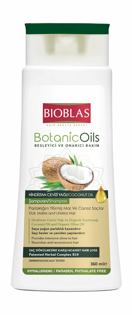 Купить Bioblas Botanic Oils Coconut Oil Shampoo, Шампунь для придания блеска тусклым безжизненным волосам с кокосовым маслом, 360мл с доставкой по всей России.