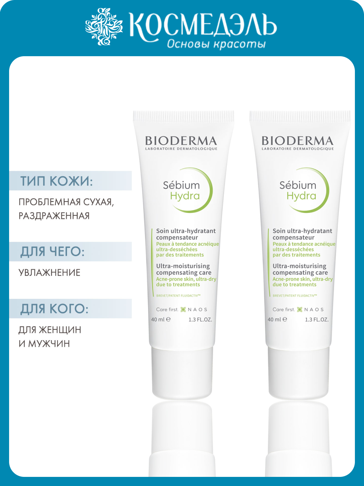 В набор входят 2 товара: Крем для лица и шеи Sebium Hydra, 2 шт х 40 мл В период лечения тяжелых форм акне кожа может очень сильно сохнуть, трескаться, раздражаться и испытывать общий дискомфорт. Крем Bioderma Sébium Hydra помогает восстановить кожу, качественно и надолго увлажнить ее и успокоить. Результаты тестов показывают, что после 14 дней использования в 89% случаев дерматологи, наблюдающие пациентов, заметили разницу. Средство восстанавливает защитный барьер кожи и предотвращают преждевременную потерю влаги. Прекрасно увлажняет и смягчает кожу. Успокаивает и повышает переносимость. Рекомендовано дерматологами. Набор не имеет внешней упаковки, товары вкладываются в заказы по отдельности.
