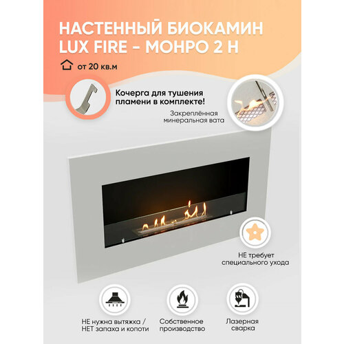 - Представляет собой цельную металлическую конструкцию белого цвета класса XS, создающую полузакрытое безопасное пространство для огня с топливным блоком Lux Fire 450 XS ограниченную закаленным стеклом в котором горит живой огонь с углом обзора 180 градусов. Универсально подходит для встройки в нишу или подвеса на стену.