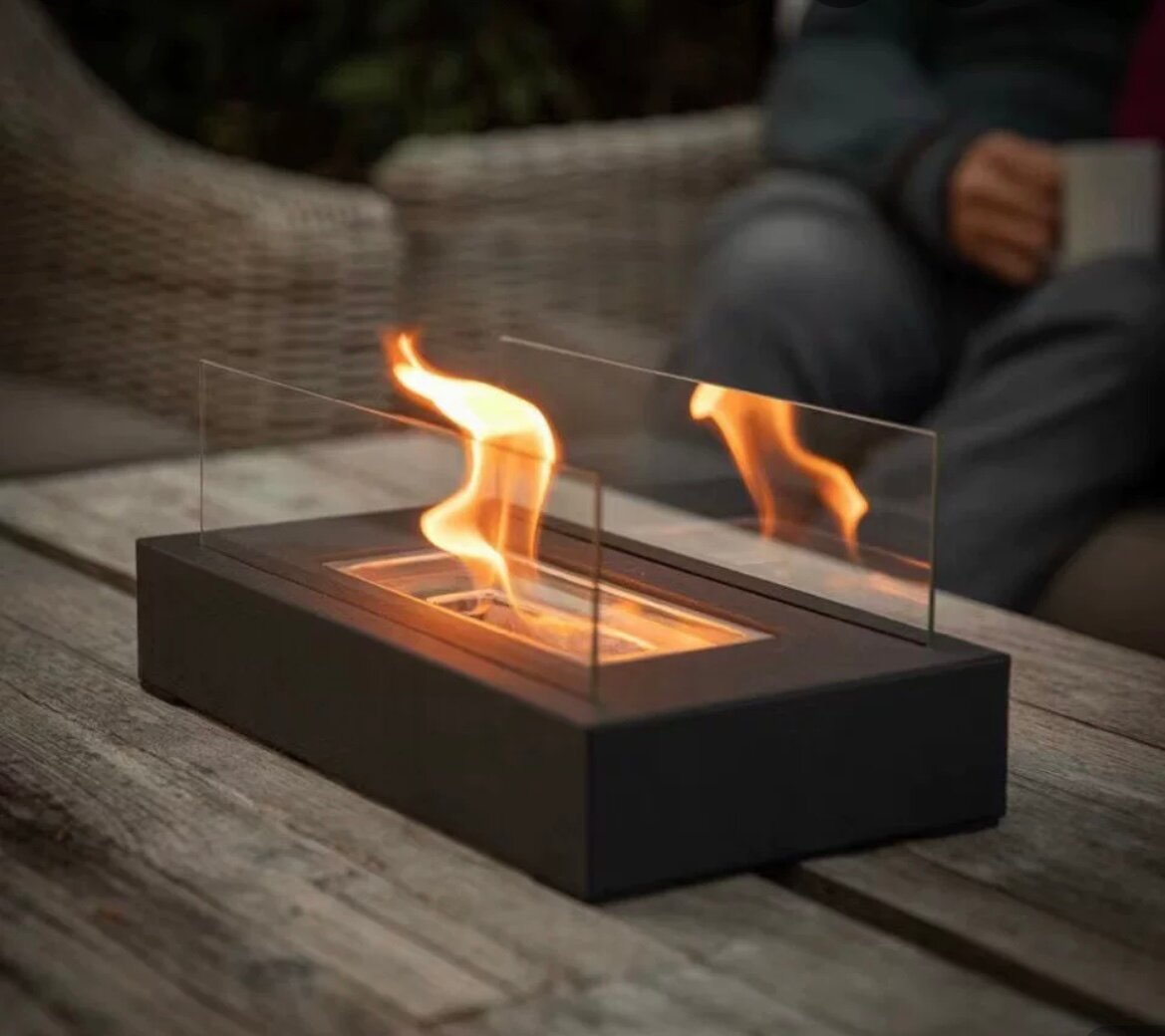 Биокамин настольный , прямоугольный , выполнен из металла со стеклянными ограничителями от огня, размеры 35*18*14,5 см высота, лопатка для тушения огня в комплекте.: сравнение цен, характеристики, фото, актуальное наличие и цены.