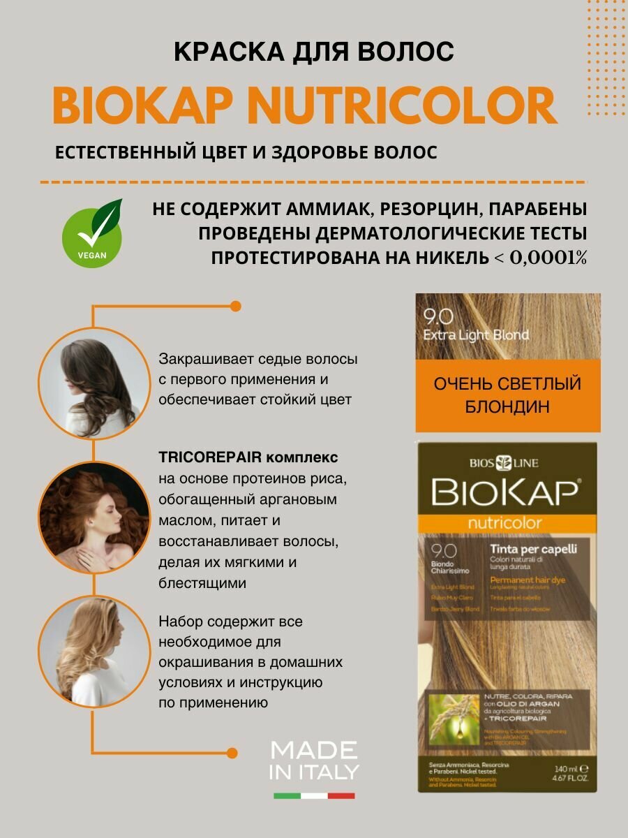 Краска для волос BioKap Nutricolor очень светлый блондин тон 9.0, 140мл: сравнение цен, характеристики, фото, актуальное наличие и цены.