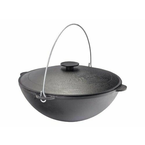 Казан снабжен двумя короткими литыми ручками и ручкой для подвешивания.