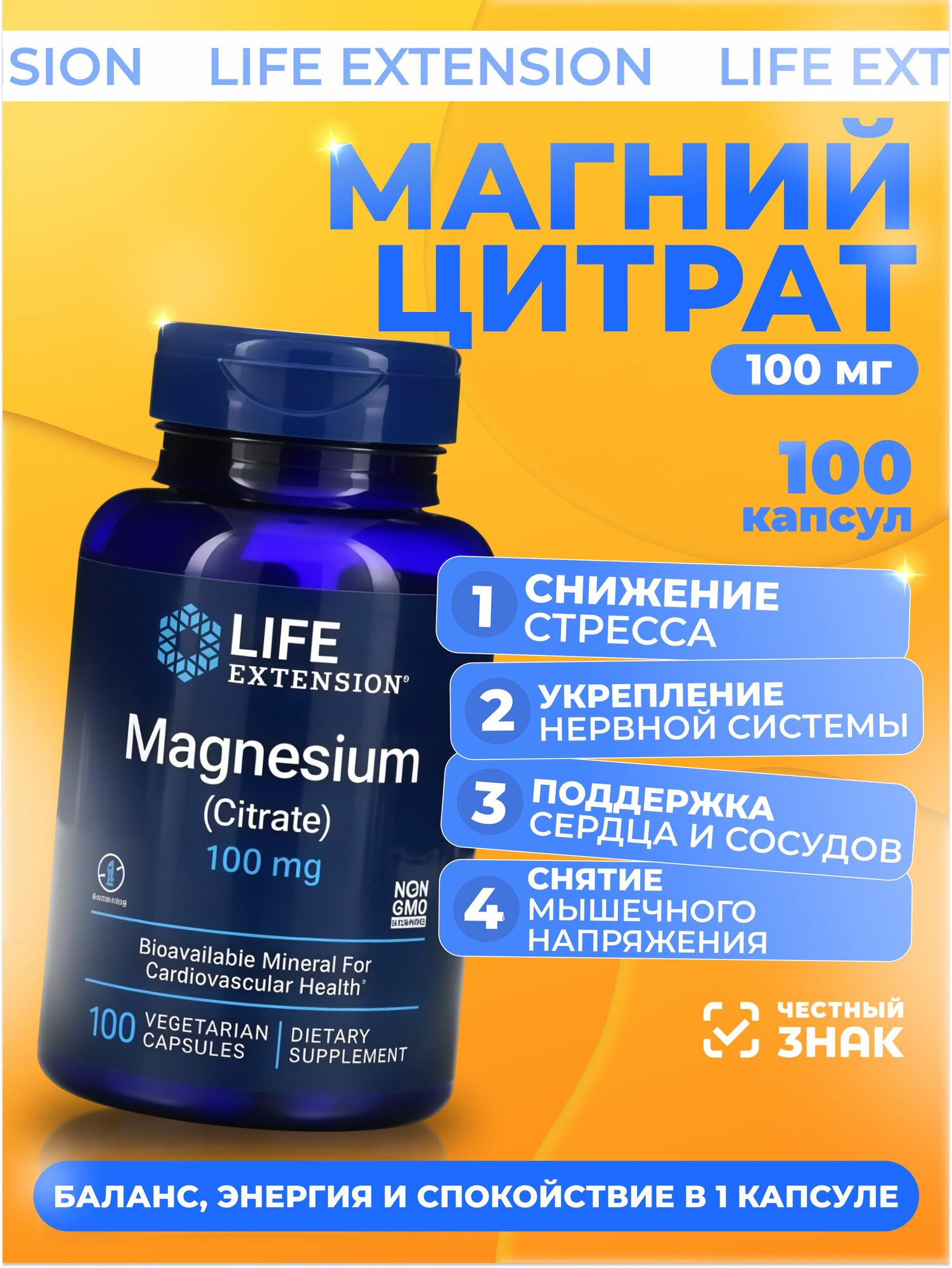 Купить Биологически активная добавка к пище MAGNESIUM (Citrate) Life Extension / Магний (Цитрат), 100 vegcaps с доставкой по всей России. Биологически активная добавка к пище MAGNESIUM (Citrate) Life Extension / Магний (Цитрат), 100 vegcaps: сравнение цен, характеристики, фото, актуальное наличие и цены.