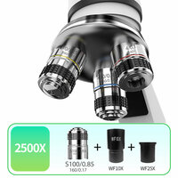 Главная особенность 1. [Высокое увеличение]: с окуляром 25x10x и объективом 100X, биологические микроскопы имеют 3 настройки увеличения: 250X, 1000X, 2500X.