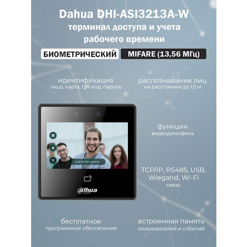 Dahua DHI-ASI3213A-W - биометрический терминал учета рабочего времени и контроля доступа с распознаванием лиц.