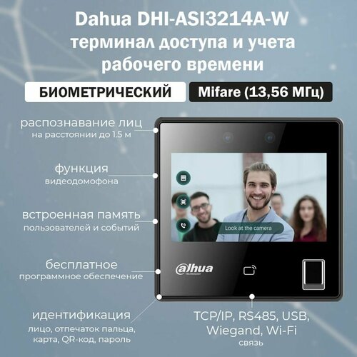 Dahua DHI-ASI3214A-W - биометрический терминал учета рабочего времени и контроля доступа с распознаванием лиц.