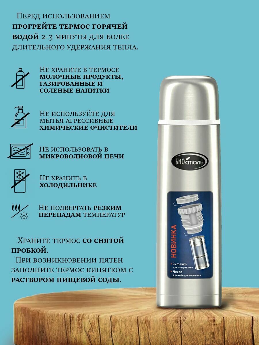 Термос с узким горлом NВ-500Z ТМ "биосталь" относится к классической серии. Термосы NB-Z укомплектованы пробкой с ёмкостью для чая или трав, а также специальным удобным ситечком для заваривания из нержавеющей стали 18/8. Даже самые мелкие листья останутся в ситечке, и вы сможете насладиться чистым и вкусным напитком. Диаметр отверстия в ситечке - 0,5 мм. Объем 0,5 литра. Сохранение тепла 24 часа. Сохранение холода 32 часа. Высота 24,5 см. Диаметр 7 см. Вес 320 г. Размеры 7,6х7,5х25,3 см. Прекрасный подарок мужчине на 23 февраля, отцу, парню, мужу, дедушке, брату, подарок мужчине на 14 февраля, подарок рыбаку, туристу. Прекрасный подарок мужчине на 23 февраля, отцу, парню, мужу, дедушке, брату, подарок мужчине на 14 февраля, подарок на новый год. Также вы можете найти наши термосы по запросам: термос, термос для чая, термос для еды, термос для чая 1 л, термос для еды с широким горлом, термос для чая 0,5, термос биосталь, термос 1 литр, кружка термос, термос 0,5л, термос для еды с контейнерами, термос для супа с широким горлом, термос 1л, биосталь термос, термос с ситечком, термос для чая 0,75, термосы, термос для кофе, кружка термос для кофе, термос биосталь 1.2, термос биосталь 0,5, кружка термос дорожная, термос для еды биосталь, кружка-термос, купить термос.