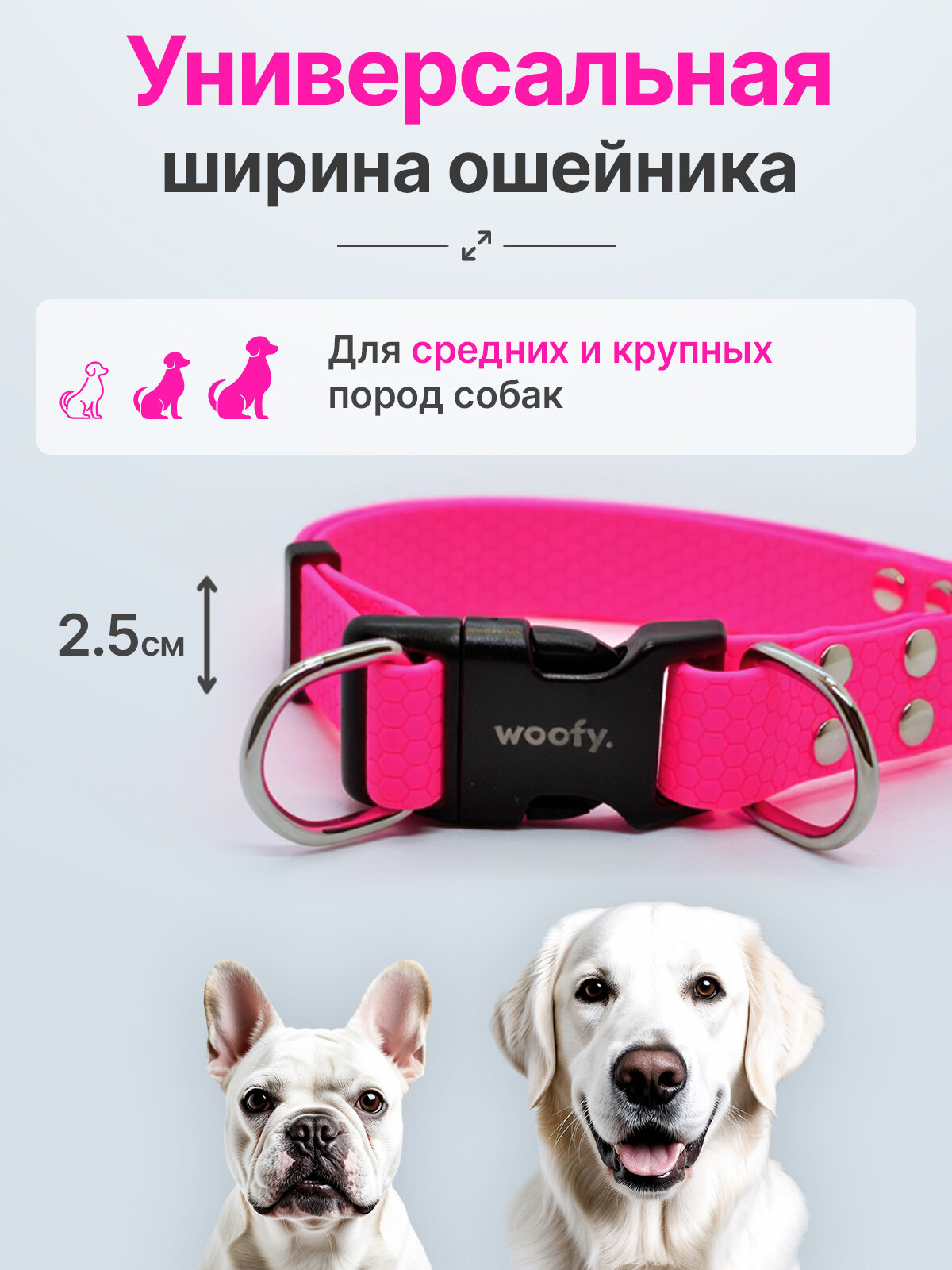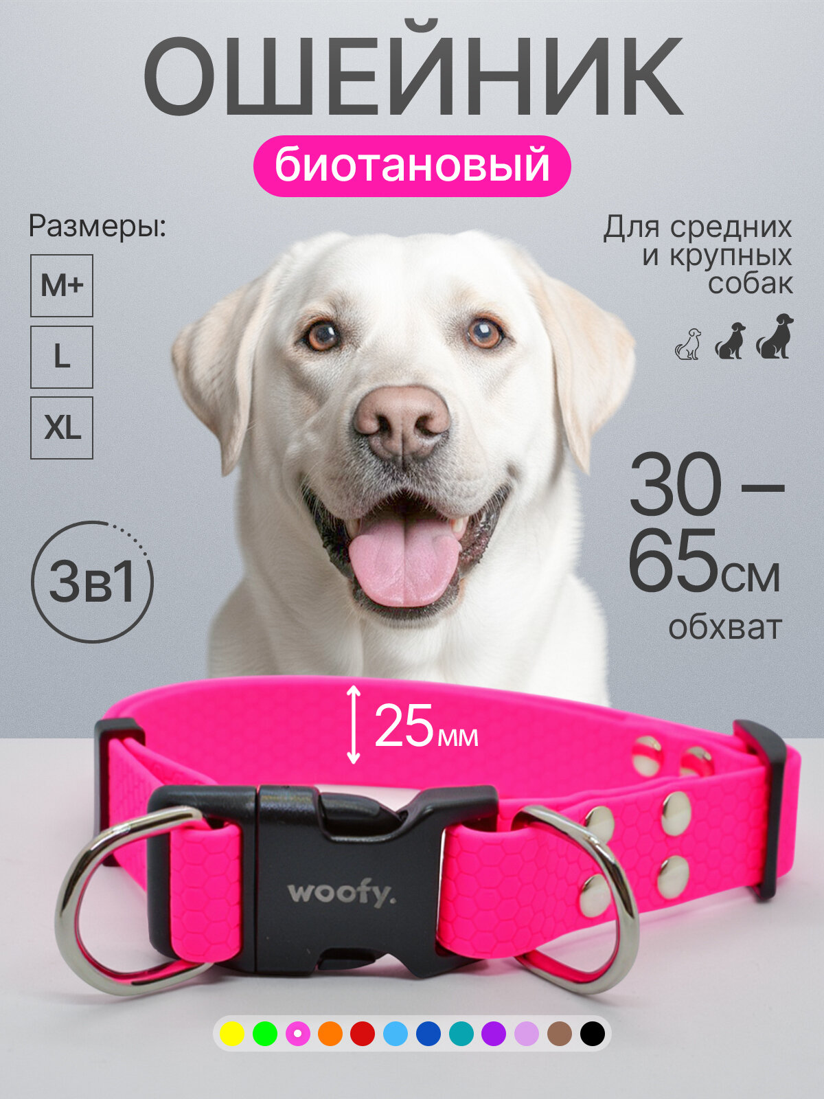 Биотановый ошейник с двумя кольцами 35-50 см (L), 25 мм, Woofy «GeksaDB» для собак средних и крупных пород, розовый: сравнение цен, характеристики, фото, актуальное наличие и цены.