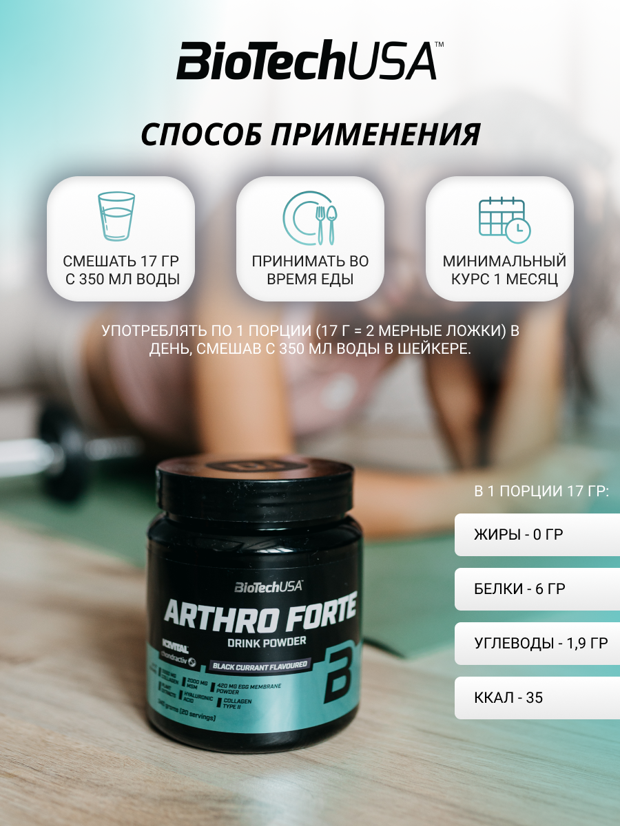 Arthro Forte Drink Powder содержит такие же безопасные, тщательно отобранные ингредиенты, как и все другие продукты BioTechUSA.