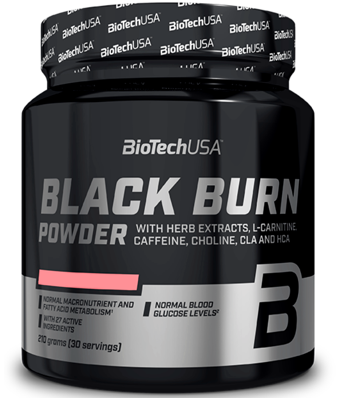 Кроме комплекса витаминов и минеральных веществ в составе Black Burn содержатся также такие компоненты, как левокарнитин, L-тирозин, конъюгированная линолевая кислота, гидроксилимонная кислота или инозитол. Среди разнообразных действующих веществ есть также экстракты 9-и растений, например корня шпороцветника, зелёного чайного листа, зелёного кофе и гуараны. Одно из преимуществ состава Black Burn заключается в том, что в него входят также пищевые волокна инулина.