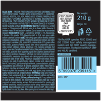 Кроме комплекса витаминов и минеральных веществ в составе Black Burn содержатся также такие компоненты, как левокарнитин, L-тирозин, конъюгированная линолевая кислота, гидроксилимонная кислота или инозитол. Среди разнообразных действующих веществ есть также экстракты 9-и растений, например корня шпороцветника, зелёного чайного листа, зелёного кофе и гуараны. Одно из преимуществ состава Black Burn заключается в том, что в него входят также пищевые волокна инулина.