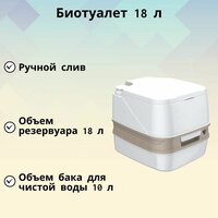 Биотуалет, 18 л, удобное и функциональное гигиеническое устройство. Подходит для использования пожилыми и людьми в послеоперационный период. Можно брать в поездки на природу или установить на даче.