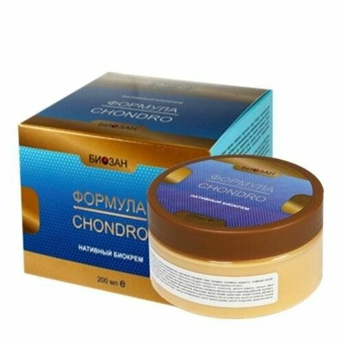 Биозан формула CHONDRO - натуральный биокрем, который разработан с учётом индивидуальных нарушений хрящевой ткани суставов, суставной жидкости, эпифизов костей, прилегающих мягких тканей соединительных волокон, сухожилий, межклеточной жидкости, кровеносных сосудов и лимфы, кожи и нервных волокон. Нативный биокрем является натуральным комплексным средством для наружного применения на основе биовытяжки соединительной ткани пантов алтайского марала, усиленной микросферами биоактивных компонентов природного происхождения; обладает полным проникновением через кожные и тканевые барьеры, противовоспалительным, противоинфекционным, регенерирующим, восстановительным, болеутоляющим действием на хрящевую ткань суставной капсулы, синовиальную жидкость, эпифизы костей: - при болевом симптоме; - при отёке в области суставов; - при дегенеративных процессах хрящевой ткани; - при нарушении вязкоэластичных свойствсиновиальной жидкости; - при нарушении кровоснабжения суставной капсулы; - при воспалительных процессах; - при нарушении двигательных возможностей сустава; - при сопутствующих осложнениях и деформации сустава. Биоактивный комплекс природных компонентов крема обладает комплементарным одновременным действием на систему кровообращения, лимфообращения, рецепторы гормонов и иммунокомпетентных клеток кожи, соединительные ткани, сухожилия, прилегающие к области дегенеративно- дистрофических изменений сустава, оказывает дополнительное сосудопротекторное, противоопухолевое, иммунопротекторное, антиоксидантное, лимфодренажное, успокаивающее действие, способствует: - улучшению плотности и упругости волокон коллагена и эластина соединительных тканей, устранению дистрофических изменений сухожилий и мышц; - повышению активности иммунокомпетентных клеток суставных тканей и области, прилегающей к суставам, предотвращению воспалительного процесса, дистрофии суставных тканей, устранению разрушения эпифизов костей; - повышению тургора и упругости кожи; - предотвращению нарушения тонуса поверхностных вен, сосудистых сеточек; - снятию усталости, чувства дискомфорта с конечностей и мягких тканей, мышц, области суставов; - нейтрализации и выведению токсинов продуктов метаболизма суставной сумки и прилегающей области; - устранению солевых отложений на суставах; - устранению покраснений, болей, отёков; - устранению ревматических болей; - устранению икроножных судорог; - стимуляции выработки гликозаминогликанов и естественному самовосстановлению хрящевой ткани; - увлажнению кожи; - устранению сухости; - предотвращению трофических изменений кожи в результате нарушения функций и состояния эндокринной системы; - устранению гематом; - предотвращению болей невралгического характера. Крем рекомендуется применять при острой боли в области суставов, мышц, при ревматических болях. Возможно применение крема в профилактических целях для предупреждения патологического процесса в суставной сумке при нарушении обменных процессов в организме и осложнении на суставах, повышенных физических нагрузках, подагре, возрастных изменениях суставов, профессиональном факторе патологического изменения суставов. Рекомендуется к применению людям, испытывающим постоянные нагрузки на суставы, соединительные ткани, опорно-двигательный аппарат