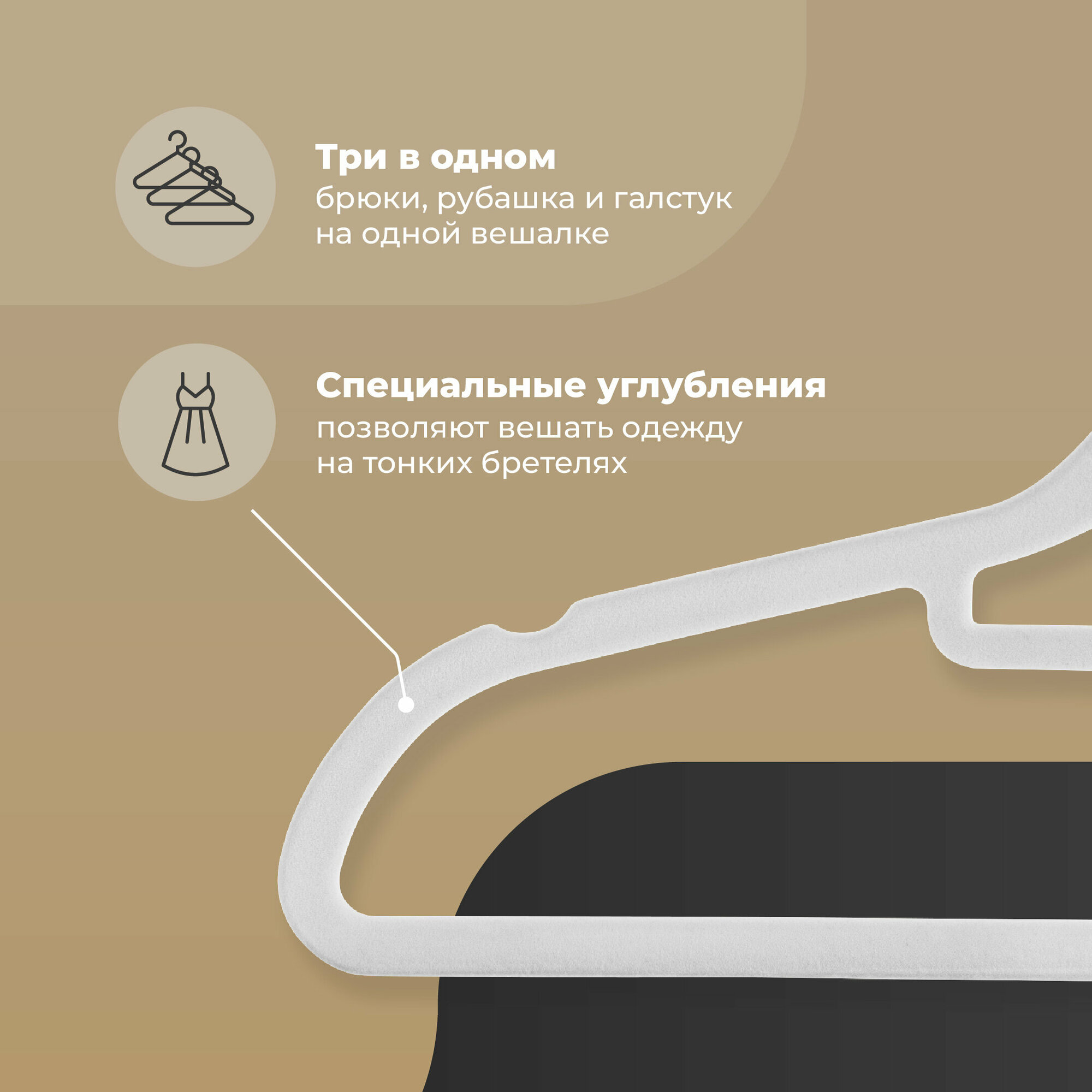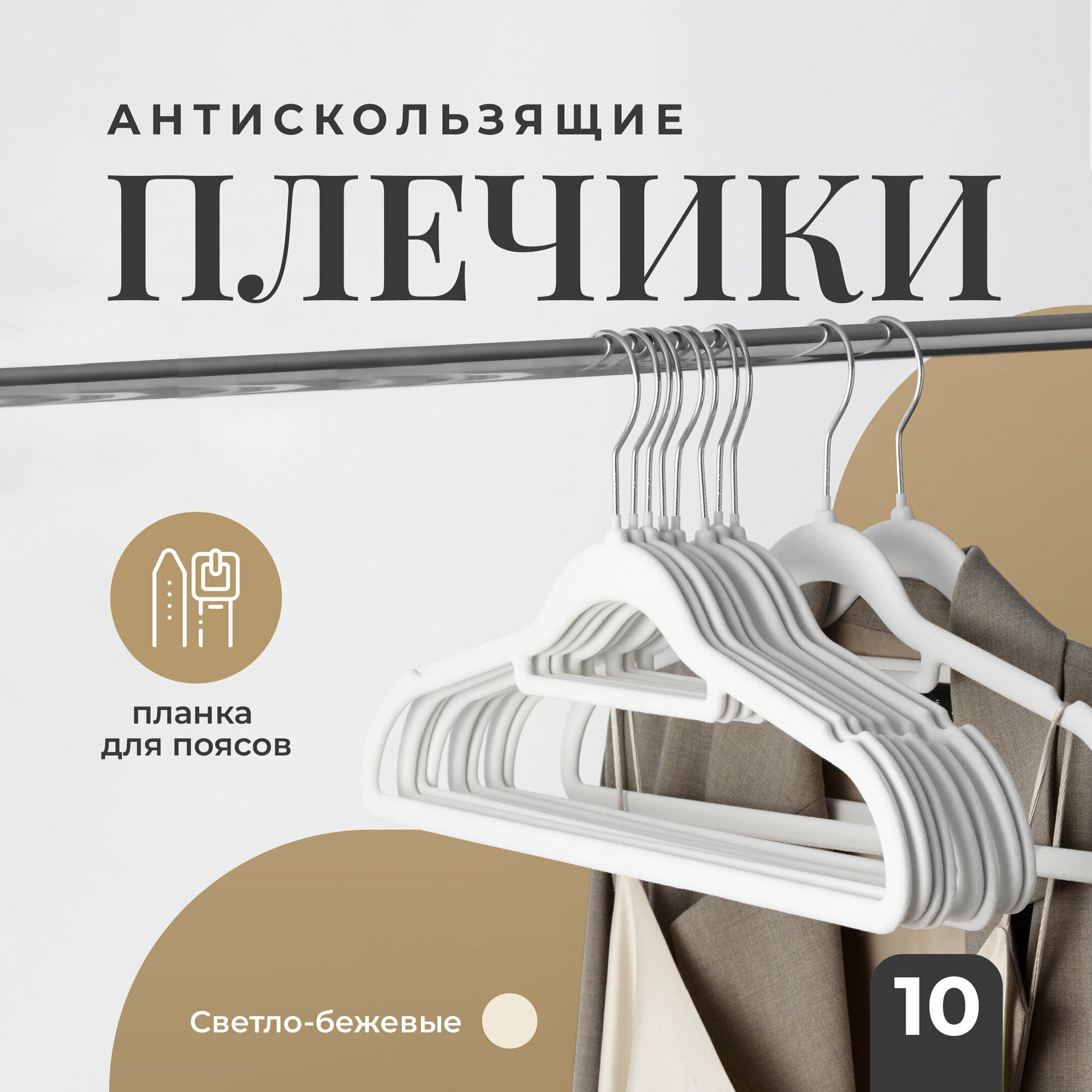 Состояние нашей одежды во многом зависит от того, какие мы используем вешалки. Плечики бывают совершенно разными по форме, материалу, цвету и покрытию. Самыми практичными и удобными из всех считаются бархатные вешалки для одежды. Набор плечиков Birdhouse выполнен из прочного пластика, который покрыт бархатным напылением. Благодаря такому мягкому покрытию, одежда не соскальзывает с вешалки в шкафу и надежно держится на плечиках. Большая или миниатюрная, с углублениями или без — любая вешалка для одежды в шкаф из нашей линейки отлично сохраняет качество вещей и позволяет им всегда выглядеть аккуратно. Вешалка-плечики для одежды подходит для кофт, футболок, жакетов, платьев кардиганов и брюк. Даже самая деликатная ткань, такая как шелк, будет прекрасно держаться на плечиках и не соскальзывать с них. Тонкие вешалки экономят до 50% места в шкафу, в сравнении с привычными широкими плечиками. В любой момент вы можете собрать их вместе и быстро освободить шкаф или перенести прямо с одеждой. Благодаря тому, что наши плечики под одежду такие узкие, они оставляют минимум заломов на вещах, а это большой плюс, ведь многие ткани быстро портятся, если их часто гладить. Вешалка с бархатным покрытием — это не только идеальный вариант хранения повседневной одежды. Также она используется как вешалка для верхней одежды: любые куртки, плащи и ветровки можно развесить на плечиках и сэкономить место в гардеробной, которого и так всегда мало. Собирайте свой стильный образ и размещайте все его элементы на одной вешалке — не тратьте больше время на долгие поиски деталей перед самым выходом. Набор вешалок из 10 штук для вещей Birdhouse в светло-бежевом цвете. Размеры: длина 42 см, высота 22 см, толщина 0,5 см. Украшайте свой интерьер стильными элементами и заботьтесь о красоте своей одежды вместе с Birdhouse.