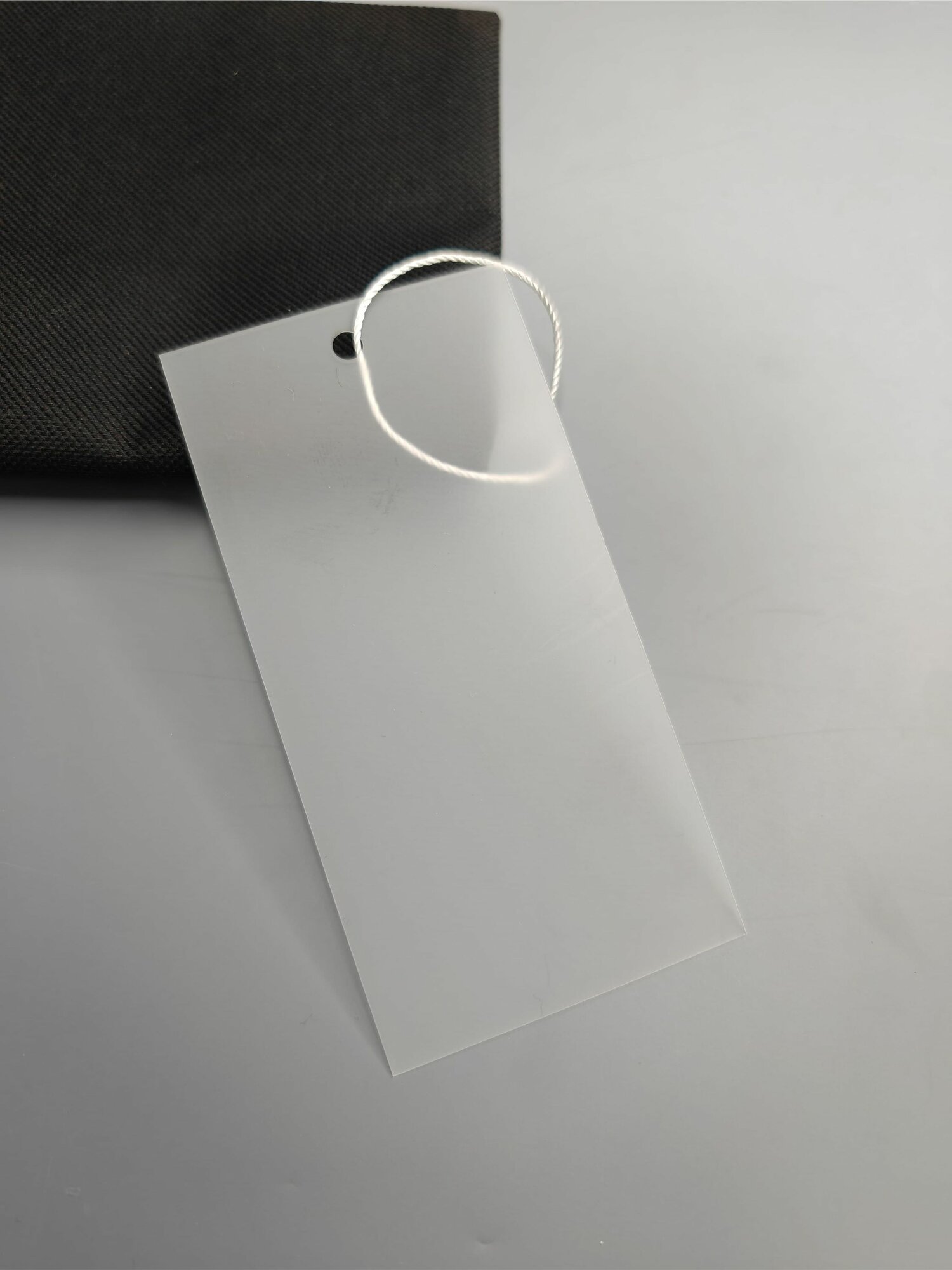 Купить Бирка пластиковая прозрачная матовая 60х120 мм с белым текстильным подвесом — 500 шт. (этикетка для одежды, для подарков, бирка для ключей) с доставкой по всей России.
