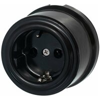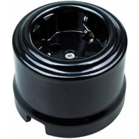 Керамическая розетка Bironi ретро с заземлением одинарная, наружной установки, цвет черный, без защитных шторок. Предназначена для сетей до 250 В на ток до 16 А. Заземляющий контакт обеспечивает дополнительную защиту от удара электрическим током. При наличии заземления электрический потенциал уходит в землю, защищая человека.