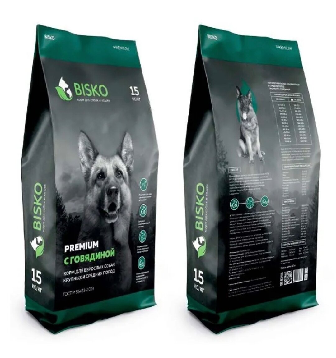 Биско Премиум с говядиной 15 кг. Корм сухой для взрослых собак крупных и средних пород в металлизированной упаковке: сравнение цен, характеристики, фото, актуальное наличие и цены.