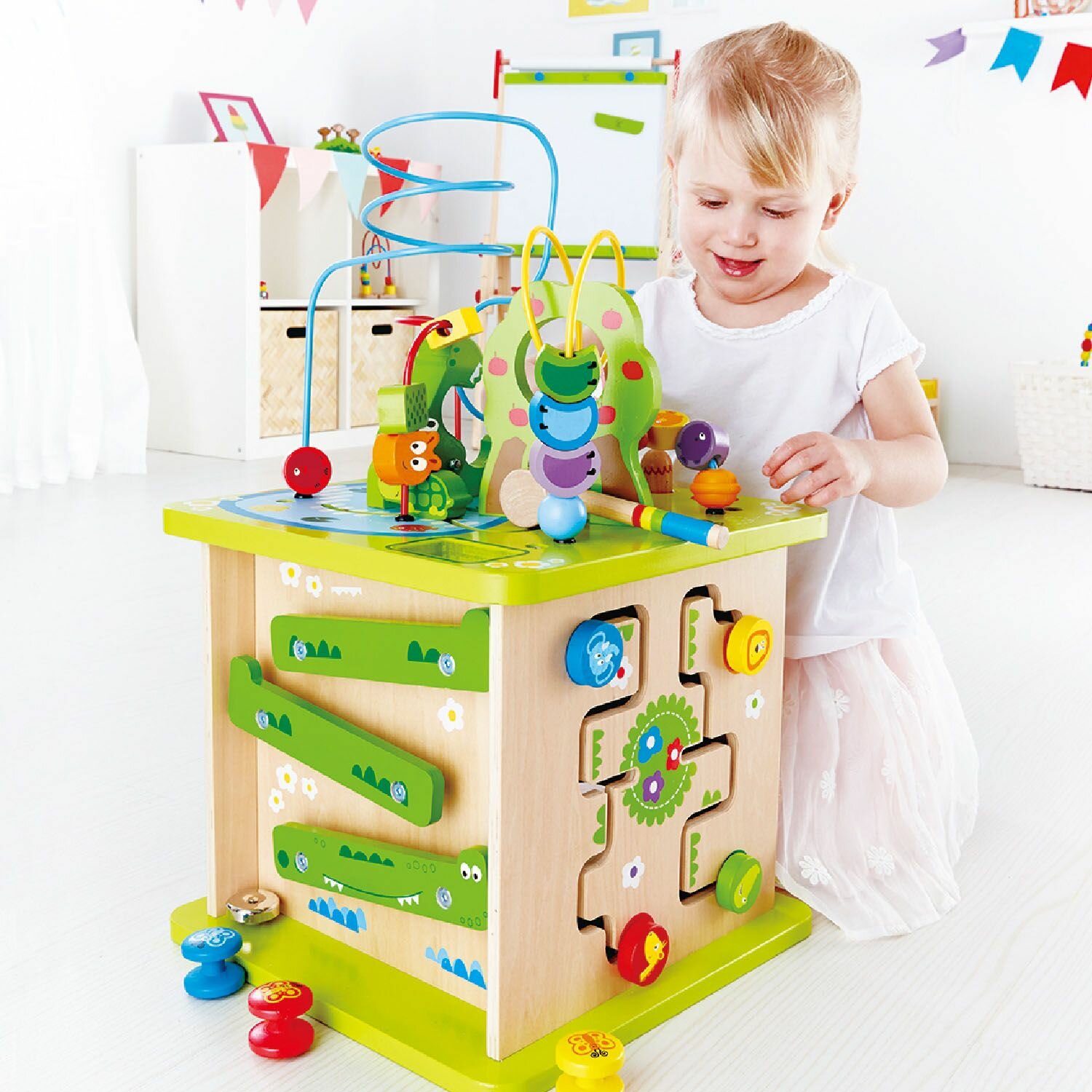Бизиборд - это превосходная развивающая игрушка, с которой ребенку будет невероятно полезно проводить время. На каждой грани игрового кубика имеются различные фигуры и подвижные элемент. Выберите, с какой стороны куба вы хотите играть. Нажмите правую кнопку, чтобы услышать музыку! Переместите среднюю шестеренку монстра, чтобы отодвинуть шестеренки по углам! Сопоставьте фигуры, затем поверните ключ, чтобы открыть дверь и найти таинственных животных в лесу! Проведите бусины по лабиринт, отправляйте шарики по дорожкам и используйте молоток, чтобы выбить шарик! Проводите часы, исследуя, играя и учась с этим замечательным бизибордом! С пятью музыкальными режимами в сочетании с пятью темами куб также включает в себя вращающиеся шестеренки, игру в пинбол, лабиринт из бусин, сопоставление форм и многое другое! Отличная интерактивная игрушка, которая развлечет и увлечет малышей на долгие часы!