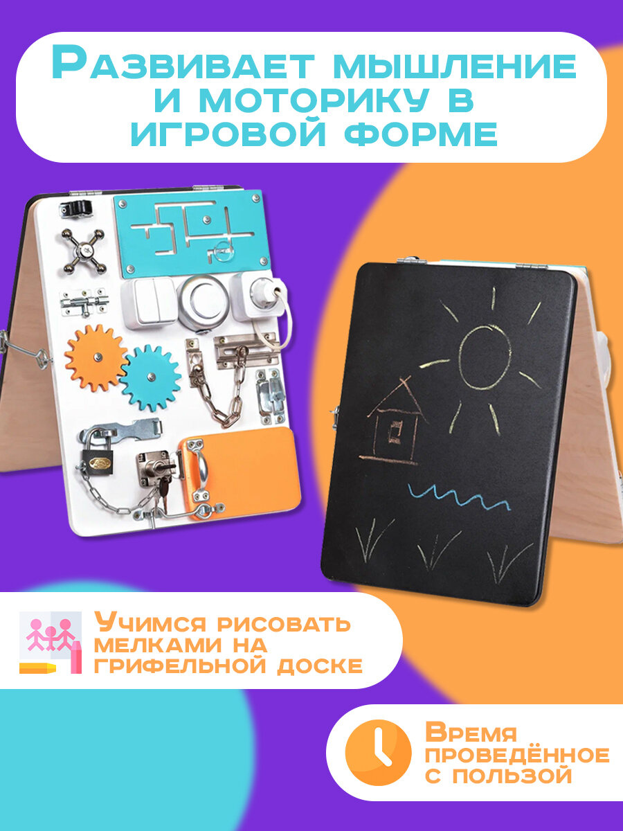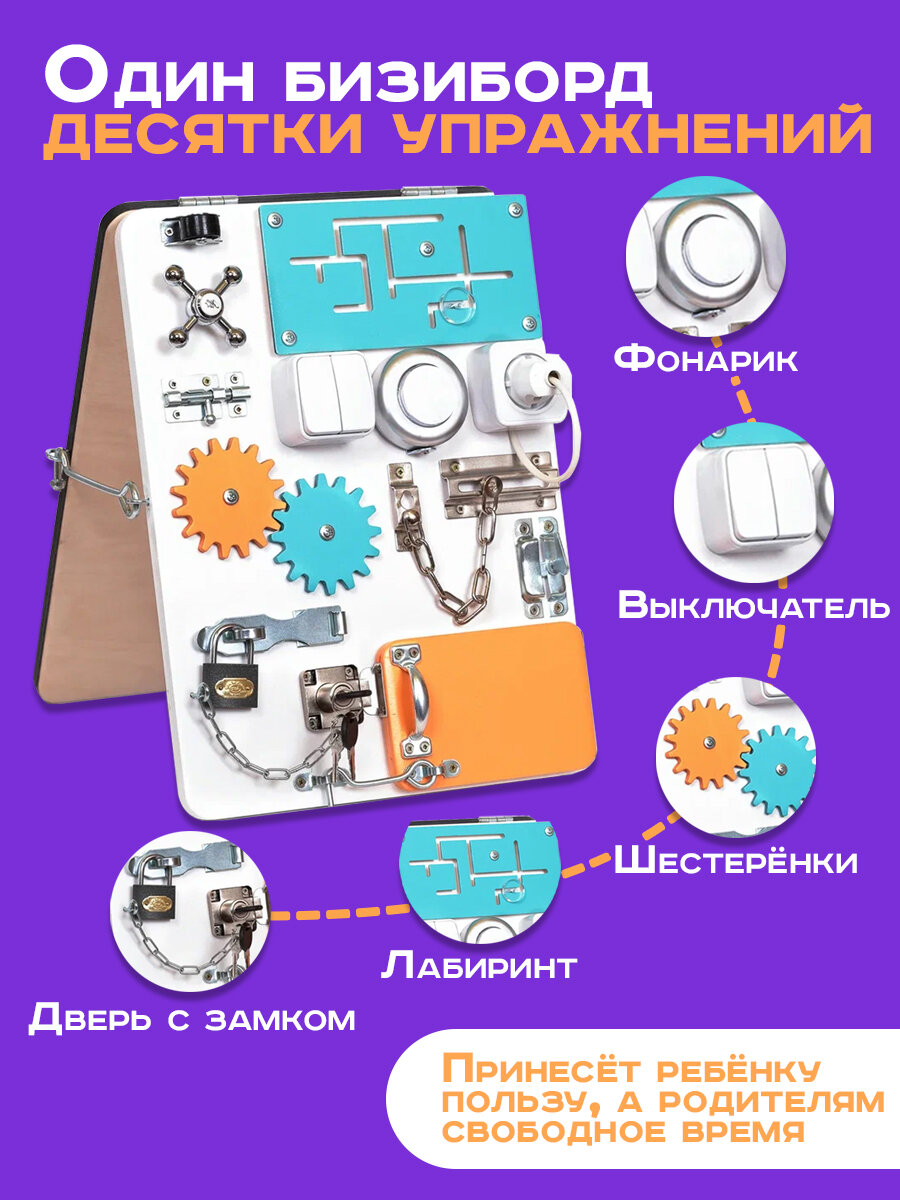 Бизиборд «Мастерская бизибордов Развивайка» двухсторонний Компакт 40х30 см со светом: сравнение цен, характеристики, фото, актуальное наличие и цены.