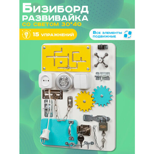 Бизиборд «Мастерская бизибордов Развивайка» Компакт 30х40 см со светом