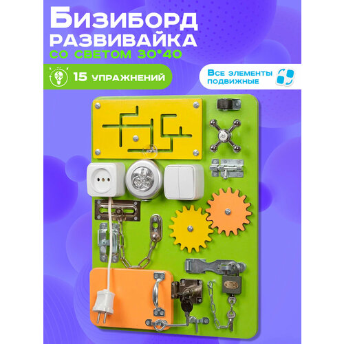 Бизиборд "Развивайка" Компакт 30х40 см со светом - это отличный выбор для родителей, которые хотят развивать своего ребенка, делая это весело и интересно.
