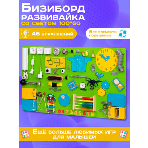 Бизиборд "Мастерская бизибордов Развивайка" Мега 100х60 см Салатовый - это развивающая игрушка, которая поможет детям в развитии мелкой моторики, координации движений, логики и усидчивости.