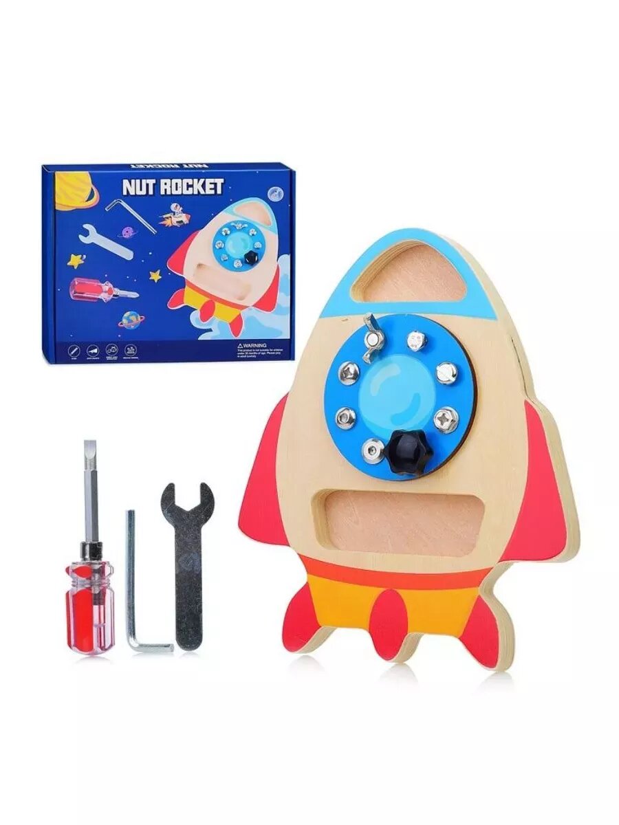 Купить Бизиборд «Ракета» Сундучок вогдаль, дерево, для развития моторики, от 6 мес. с доставкой по всей России.