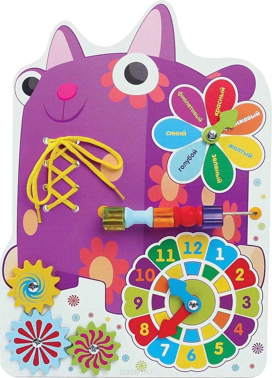 Купить Бизиборд развивающий «Кошечка Мяу», деревянный, с часами, шнуровкой, 6 элементов с доставкой по всей России.