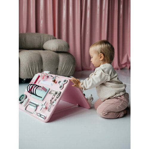 Бизиборд «мини двойной» от бренда Made By Dad - игрушка подарок для раннего развития малышей со светом, пультом, телефоном и другим наполнением, которое заинтересует любого ребенка.