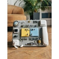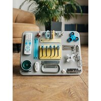 Бизиборд развивающий со светом, 40/30 см. двойной, цвет серый