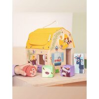 Бизидом от Lilliputiens -развивающая игрушка, которая превосходит традиционные бизиборды. Выполненный в форме домика с крышей из фетра, состоящий из 6 рабочих панелей, бизидом заменяет сразу несколько развивающих игрушек, предлагая ребенку много возможностей для игры.