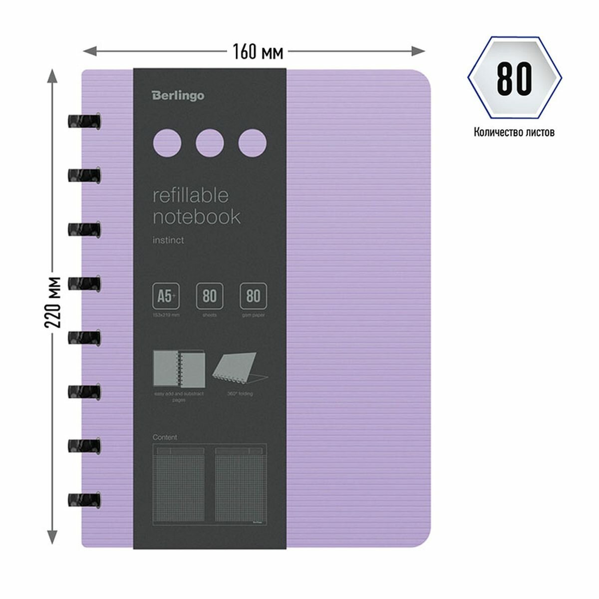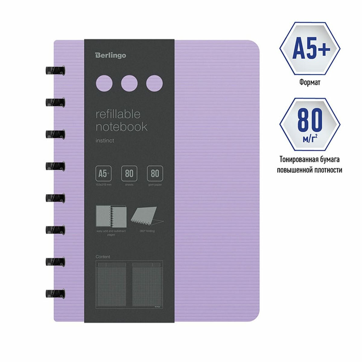 Бизнес-тетрадь А5 Berlingo Instinct, 80 листов, клетка, на кольцах, возм. замены блока, линейка-закладка, лаванда/черный, 24шт.: сравнение цен, характеристики, фото, актуальное наличие и цены.