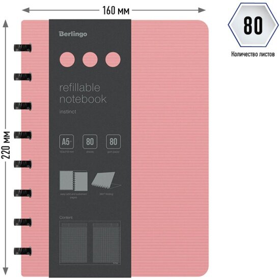 Бизнес-тетрадь A5+, 80л, Berlingo «Instinct», клетка, на кольцах, с возм. зам. блока, 80г/м2, пластик(полифом) обл, линейка-закладка, фламинго/черный (арт. 327116): сравнение цен, характеристики, фото, актуальное наличие и цены.