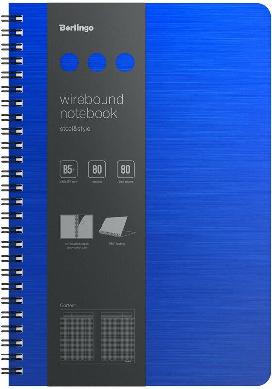 Бизнес-тетрадь В5+, 80л, Berlingo «Steel&Style», клетка, на гребне, 80г/м2, пластик. (полифом) обложка, линейка-закладка, синяя, 320791: сравнение цен, характеристики, фото, актуальное наличие и цены.