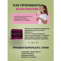 Средство действует комплексно на жировые отложения живота, бедер, ягодиц, руках и др. Кроме того, препарат не только вытесняет существующие жировые клетки, но и предотвращает появление новых, восстанавливает эластичность и упругость кожи. Капсулы для похудения черная пантера отлично справляются с пост-родовой полнотой и ожирением, полезны для коррекции веса и укрепления всего организма. Также продукция имеет оздоровительно-косметическую функцию в борьбе с целлюлитом и растяжками. Действие: Стимулирует активность обменных процессов; Сжигает жировые накопления, Тонизирует мышечную ткань; Чистит от шлаков, токсинов и продуктов застоя; Эффективно блокируют аппетит; Стабилизируют достигнутый результат; Максимально противодействуют целлюлиту; Косметически подтягивают и омолаживают кожу. Эти капсулы для похудения подойдут тем, кто хочет избавиться от лишнего веса, очистить организм от токсинов и шлаков, убрать отечность, уменьшить проявления целлюлита. Курс для похудения длится от одного до трех месяцев, в следующий раз его можно повторить не ранее чем через год-полтора. Наши покупатели отмечают, что средство для похудения черная пантера капсулы прекрасно справляются с жиром на животе, боках, руках. Жиросжигатель для похудения убирает отечность, уменьшает проявление целлюлита и совместим с большим количеством пищевых добавок, детокс напитками. Подавление и контроль аппетита, блокатор калорий и чувство голода, уменьшение количества потребляемой еды, снижение веса, прилив сил, поддержание веса и желаемый результат можно получить от приема капсулы для похудения пантера. И вес не возвращается. Способ применения: начинать прием нужно с минимальных дозировок (1 капсула в день). Затем постепенно увеличить до 2-х капсул в сутки! Количество курсов зависит от каждого индивидуально, в зависимости к какому результату вы стремитесь, допускается приём капсул до 3-х месяцев ( курсов) без перерыва, потом 3 месяца перерыв! Препараты подобного порядка работают и дают положительный результат только при полном отсутствии в организме алкогольных симптомов. А также на время курса необходимо воздерживать себя от крепкого чая, кофе. При правильном соблюдении курса результат превосходит ожидания. Противопоказания: Беременность; период лактации; почечная недостаточность; заболевания печени; сердечная недостаточность; гипертония; гастрит; проблемы с желудочно-кишечным. Хранить при комнатной температуре, вдали от детей.