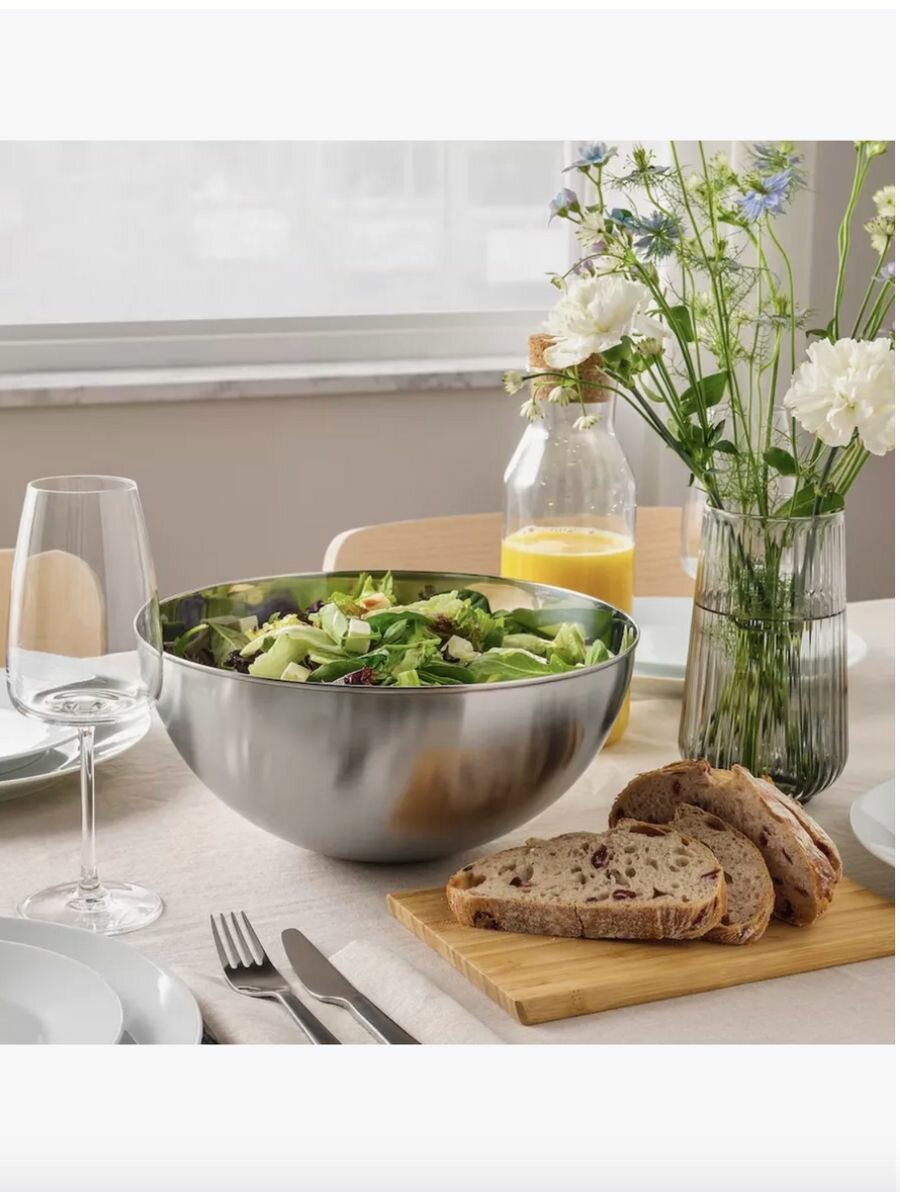 Глубокая железная миска IKEA Бланда Бланк из нержавеющей стали — это многофункциональный и практичный кухонный аксессуар. Миска изготовлена из высококачественной нержавеющей стали, что делает её долговечной и устойчивой к повреждениям. Она проста и естественна по дизайну, но при этом многофункциональна. Миска идеально подходит для перемешивания ингредиентов, использования на кухне дома и на природе на даче. Её легко мыть, в том числе в посудомоечной машине.