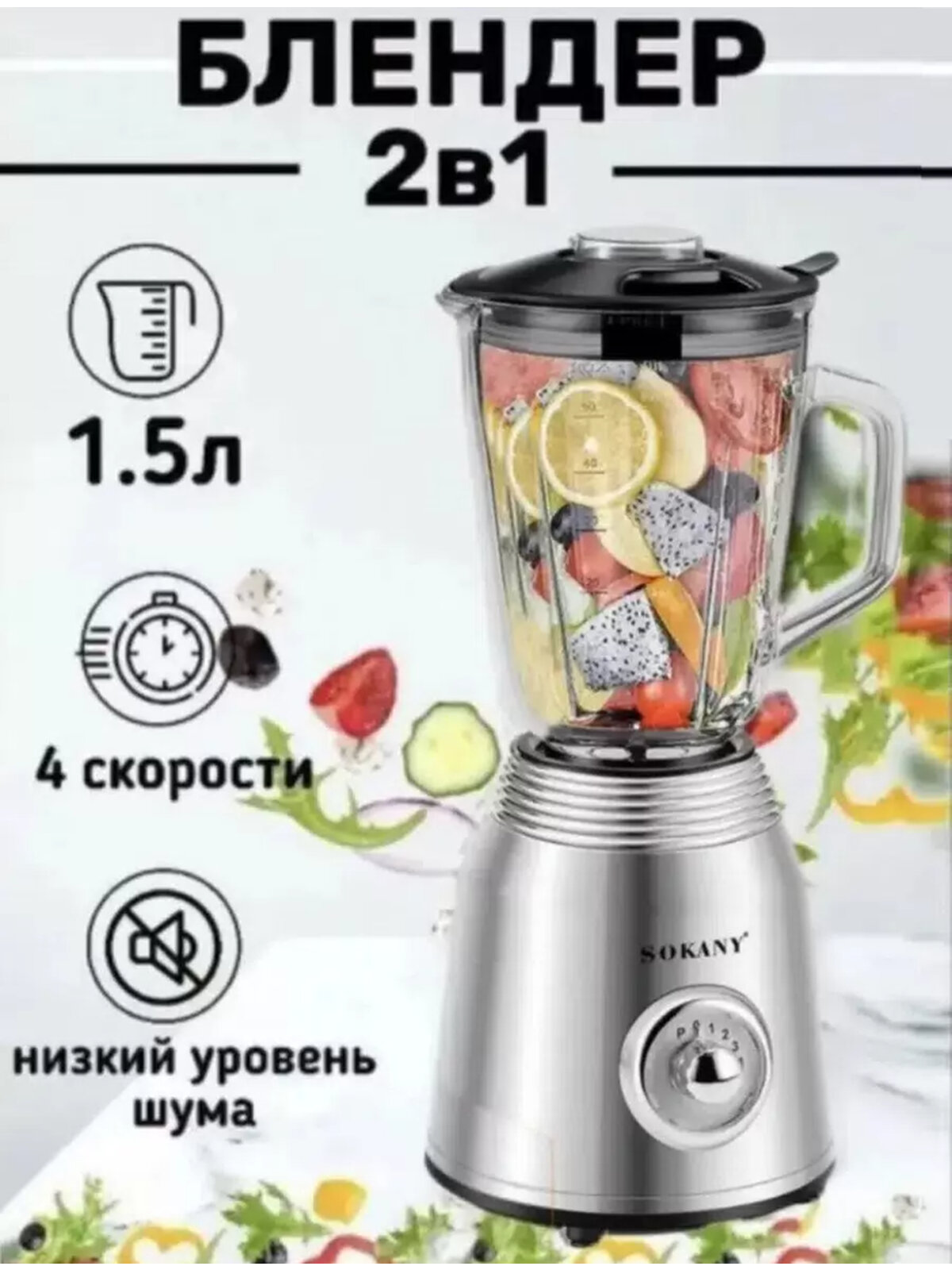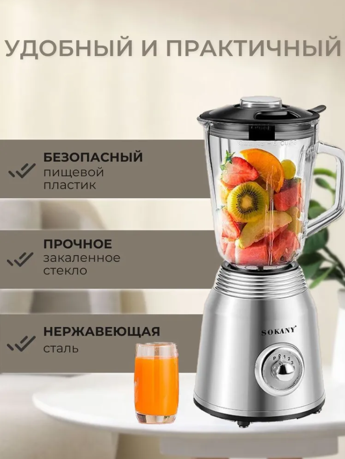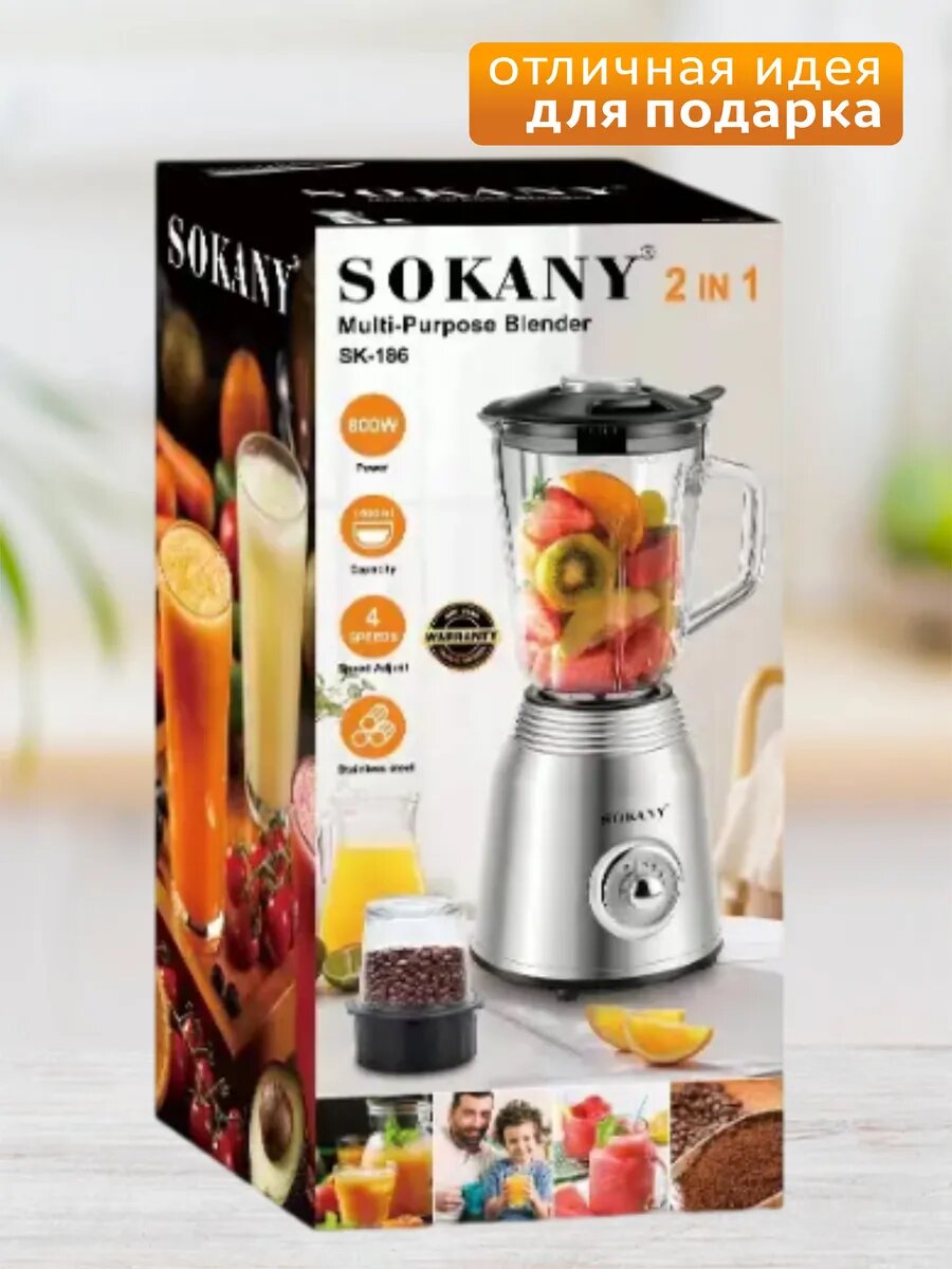 Блендер 2в1 Sokany SK186-800W 1.5 л чаша, 4 скорости, импульсный режим + кофемолка 250 мл: сравнение цен, характеристики, фото, актуальное наличие и цены.