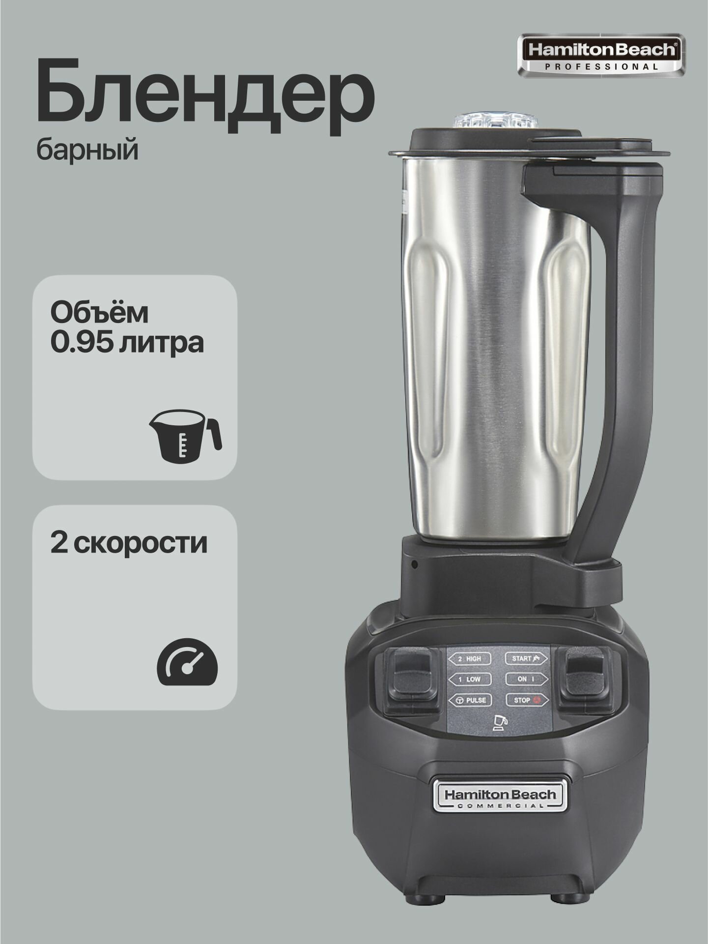 Купить Блендер барный Hamilton Beach HBB255S-CE стационарный профессиональный / чаша нержавеющая сталь / измельчение льда с доставкой по всей России.