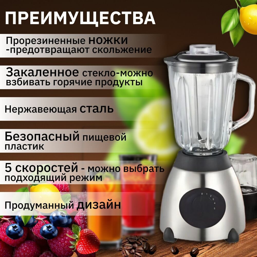 Купить Блендер cтационарный для смузи коктейлей измельчитель 4 в 1 с чашей электрический с доставкой по всей России.