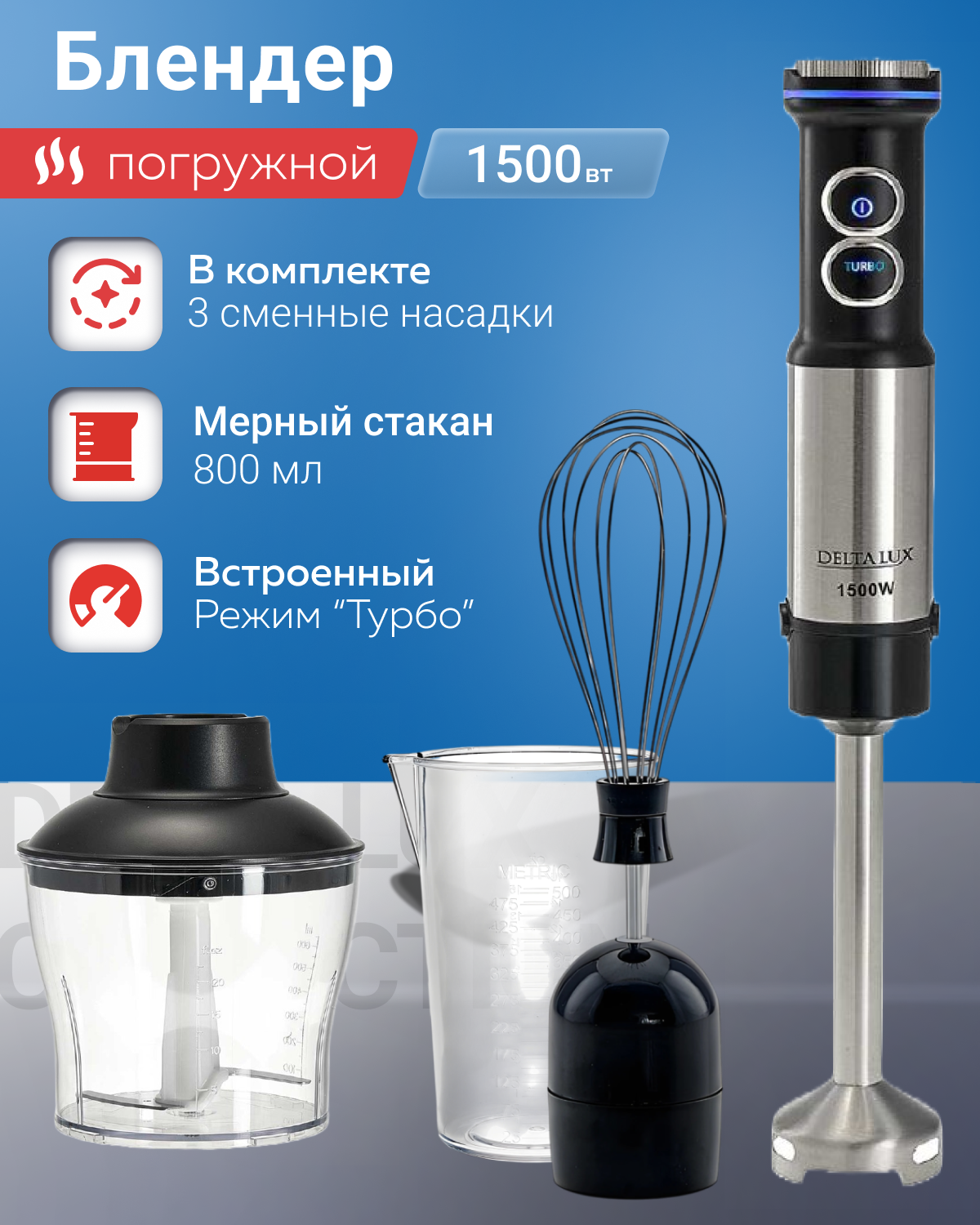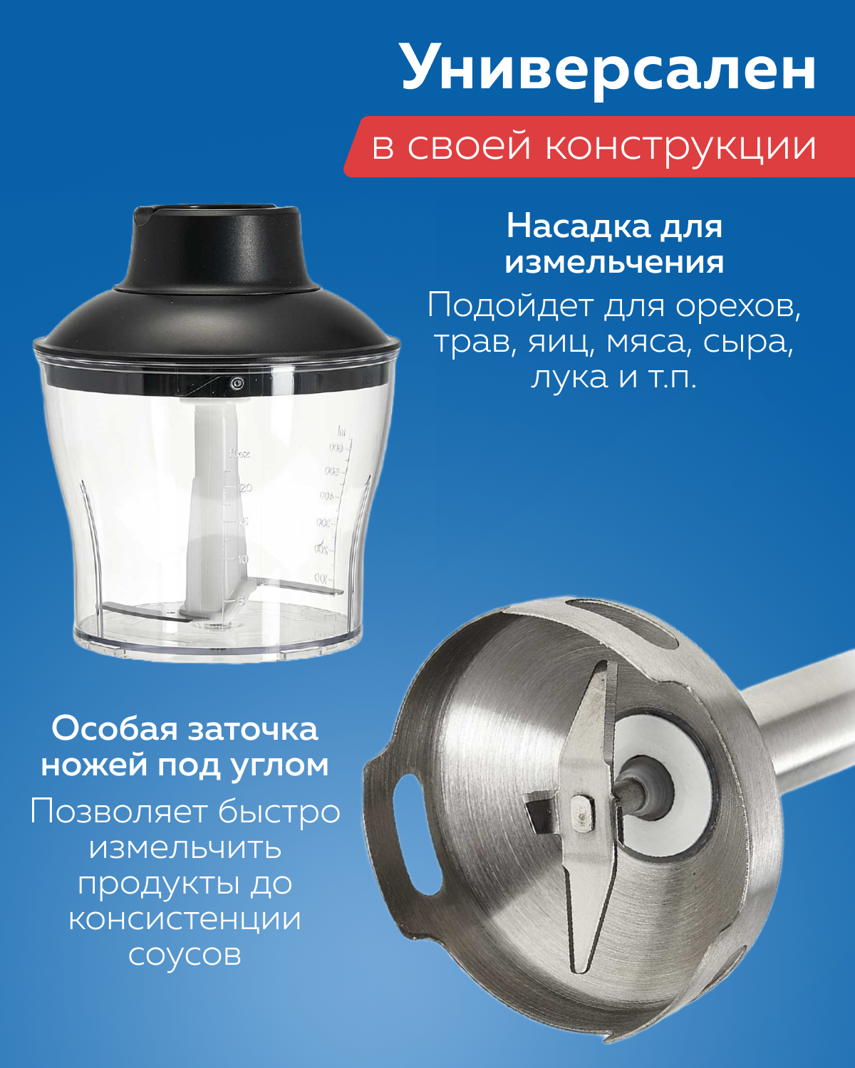 | Насадки | венчик для взбивания, для приготовления пюре, измельчитель, мельничка |