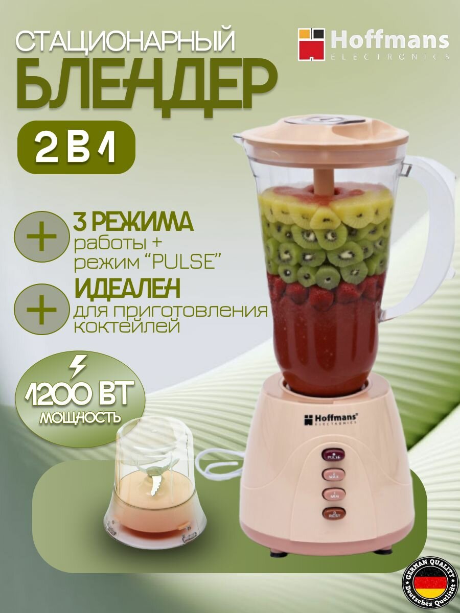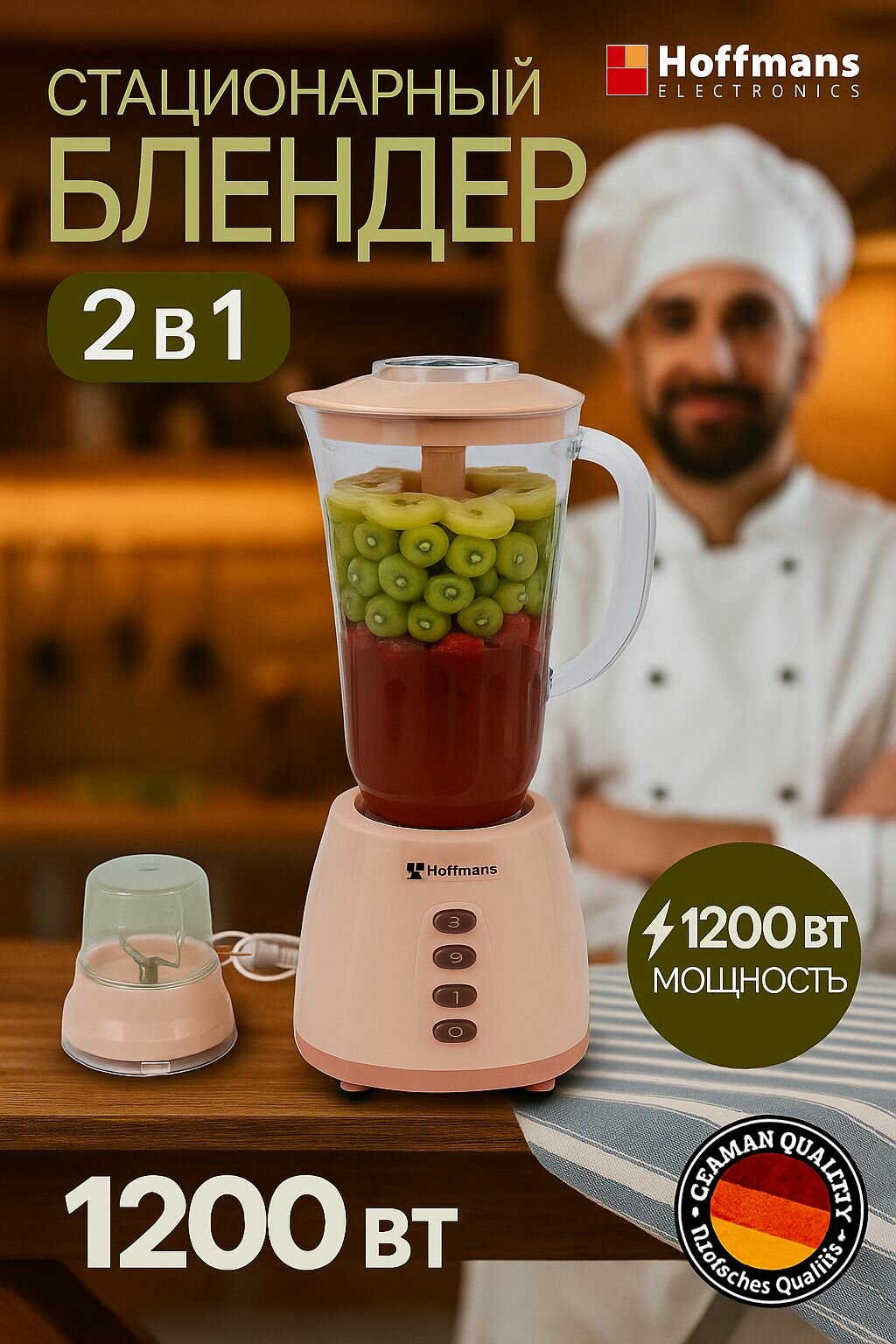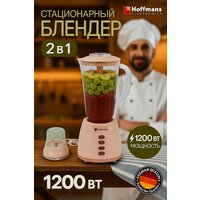 Купить Блендер Hoffmans, 2 в 1, стационарный, розовый, 1200Вт, защита от перегрузки с доставкой по всей России.