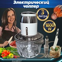 Купить Блендер измельчитель электрический 1800Вт / Измельчитель кухонный чоппер, стеклянная чаша 3 литра с доставкой по всей России.