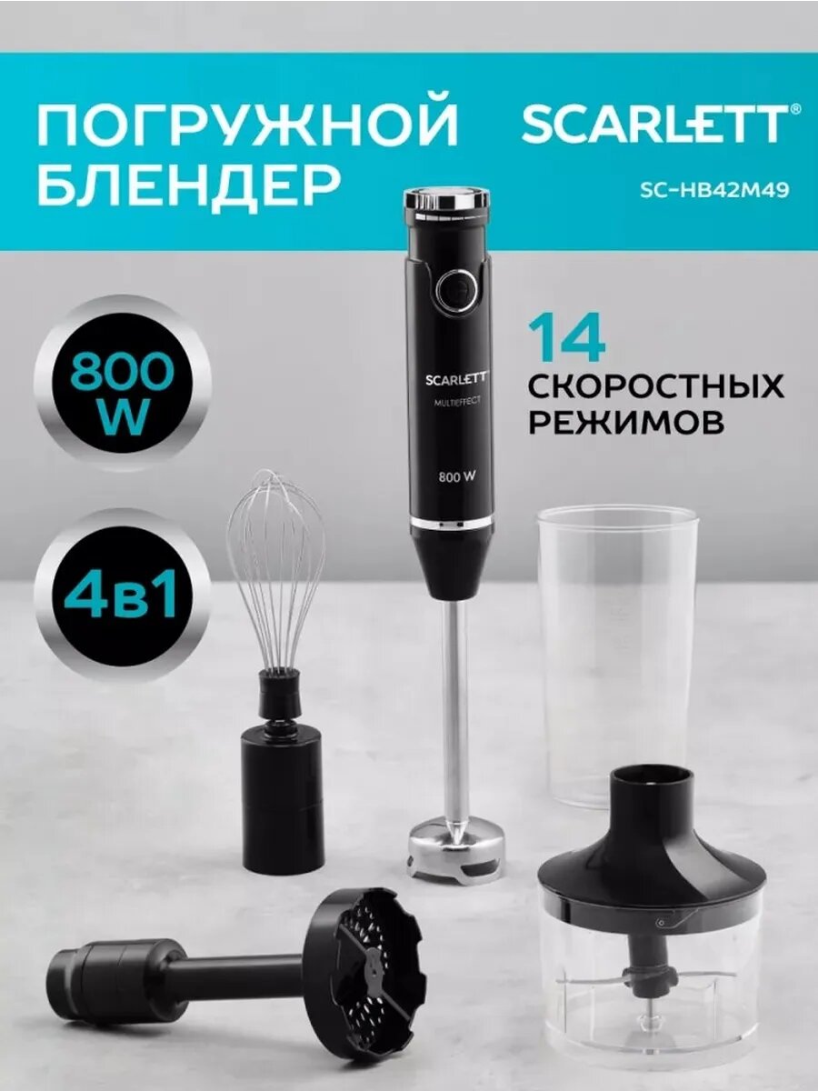 Блендер измельчитель Scarlett SC-HB42M49, погружной, 800Вт, 14 скоростей, 4 насадки: сравнение цен, характеристики, фото, актуальное наличие и цены.