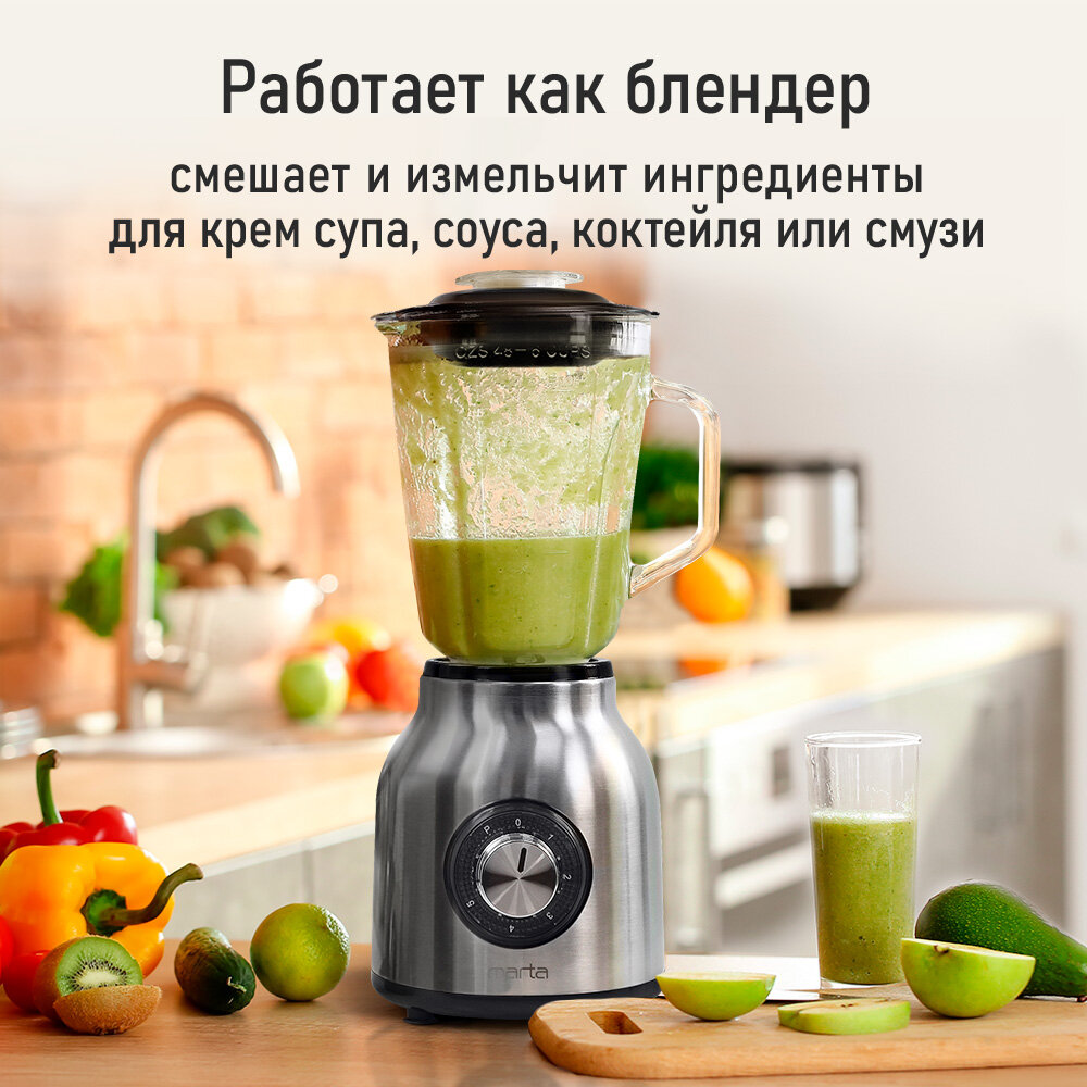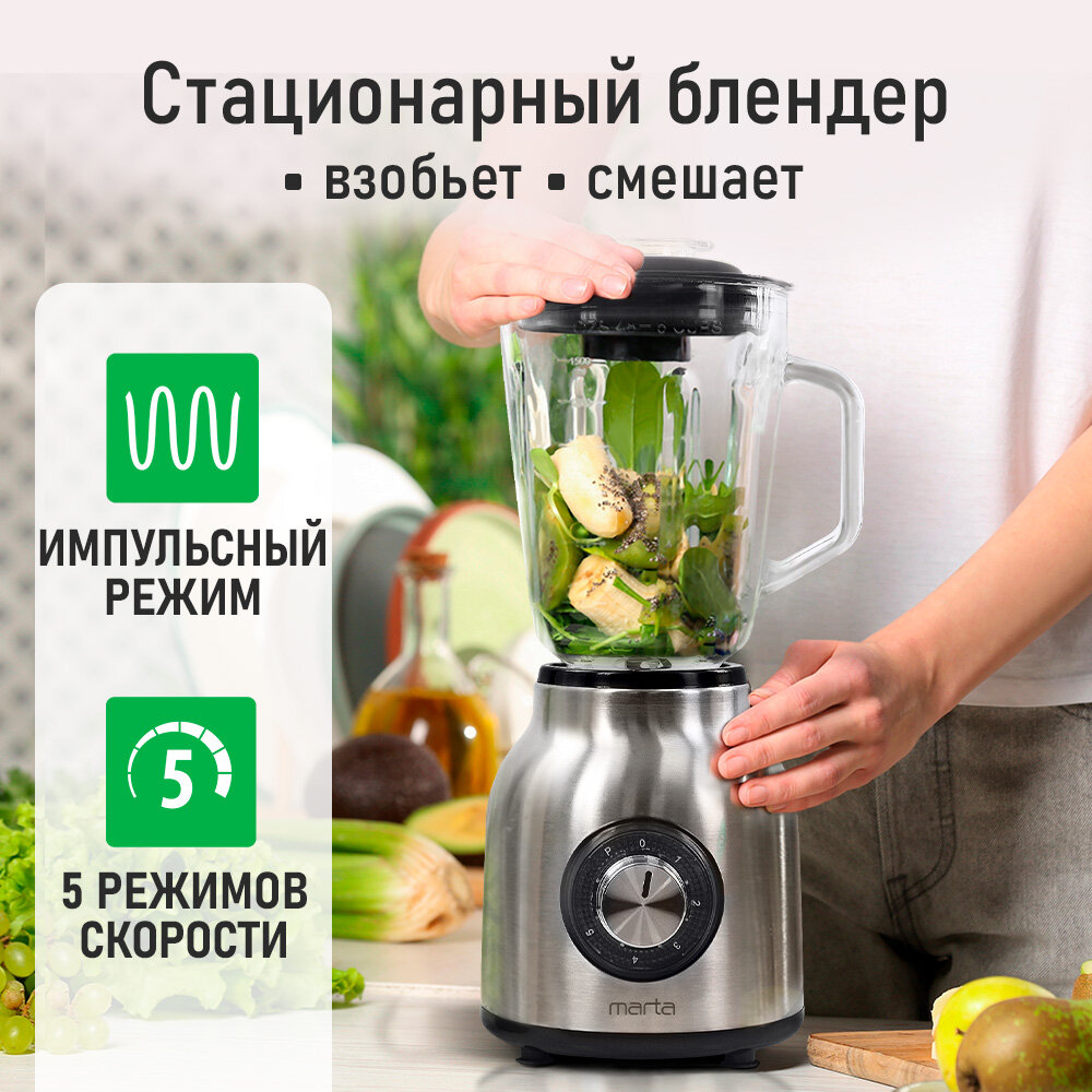 Блендер MARTA MT-KP1534A, мощность 1500Вт, стеклянная чаша 1,5л, 5 скоростных режимов: сравнение цен, характеристики, фото, актуальное наличие и цены.