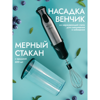| Насадки | венчик для взбивания, диск для нарезки ломтиками, для замешивания теста, для нарезки кубиками, для приготовления пюре, измельчитель, насадка для шинковки, терка |