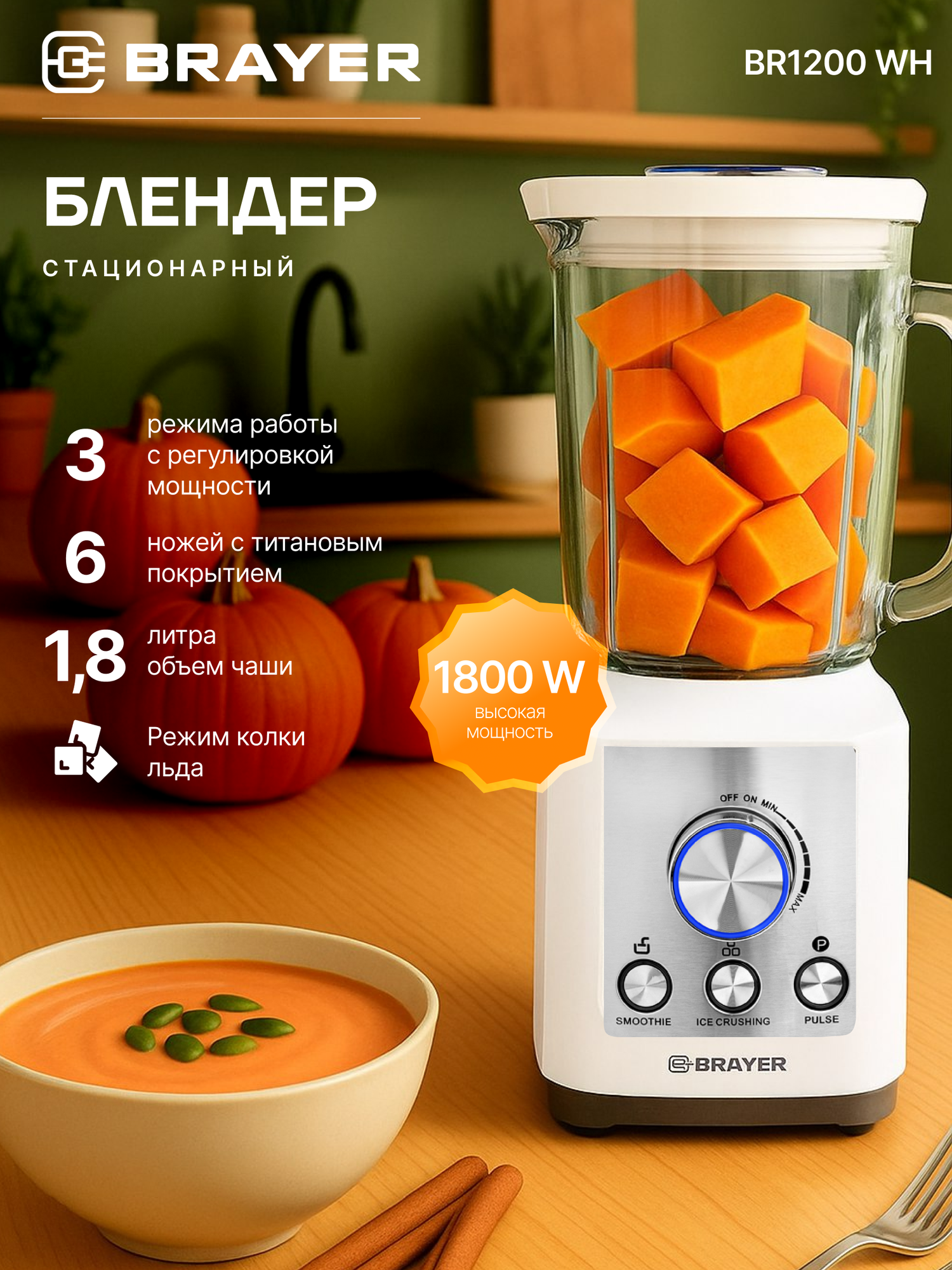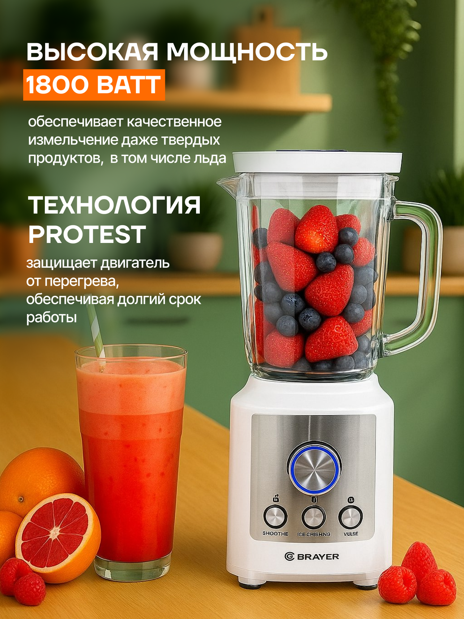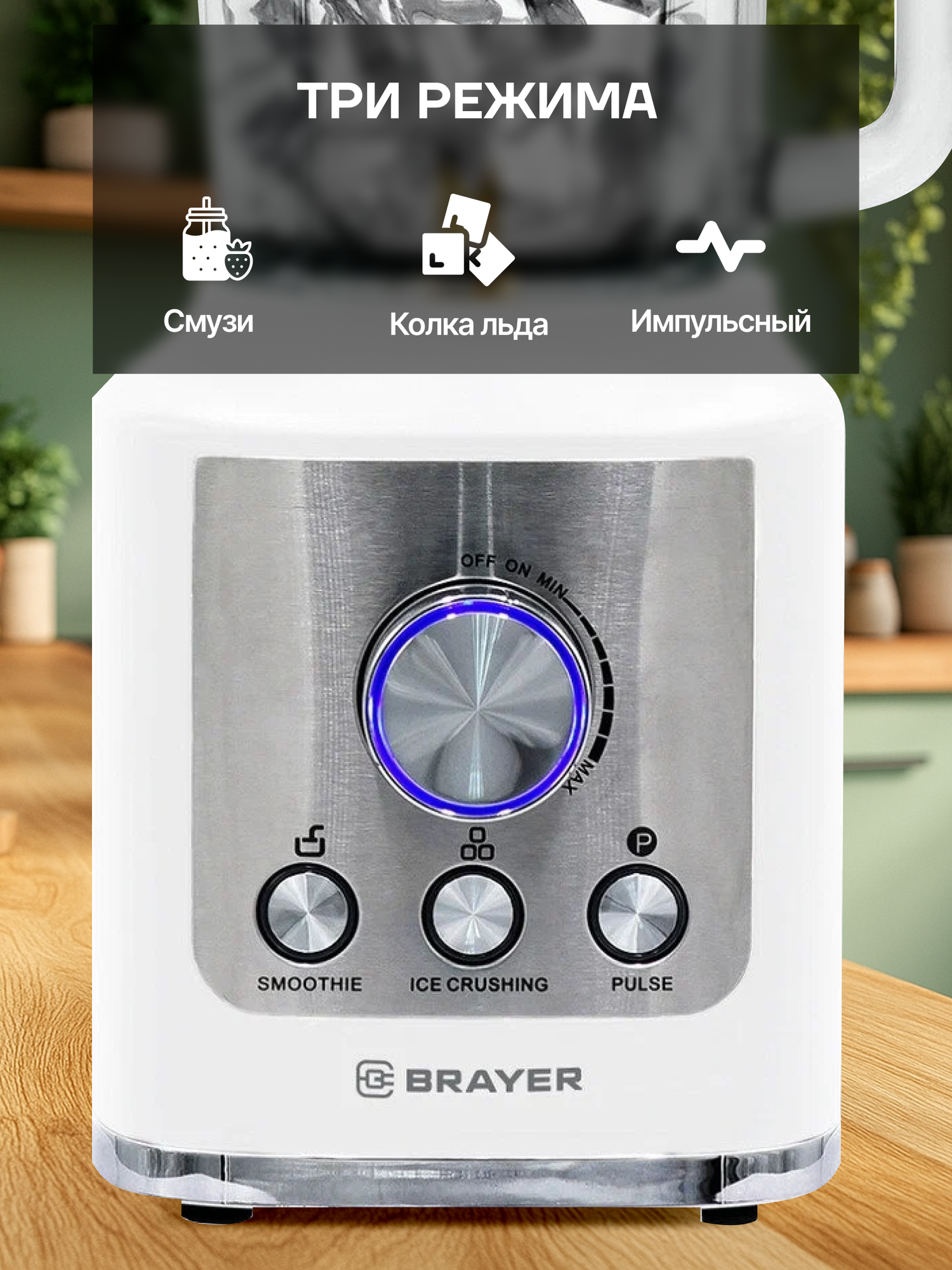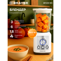 Купить Блендер настольный BRAYER BR1200WH, 1800 Вт, 1.8 л, з режима, стеклянный кувшин, для льда, белый с доставкой по всей России.
